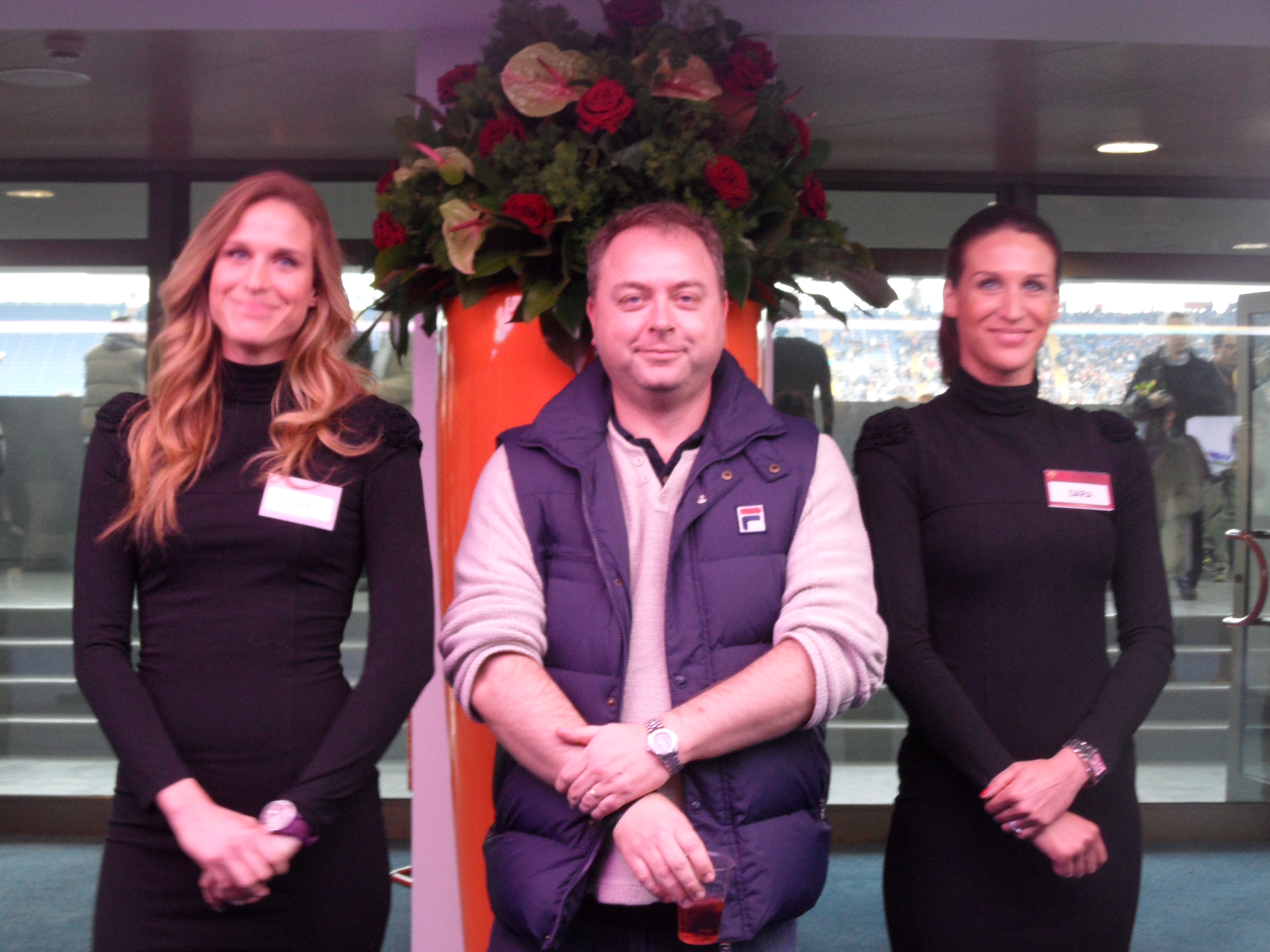 Half time meant we had access to a private lounge for “complimentary drinks and food”. After the ridiculous long route we had to take to get to the lounge we had just 6 minutes to get a return on our investment. The lounge was surrounded by very glamorous “hostesses”, all dressed in black and all six-foot plus tall. They looked on as we tucked into the free wine and what seemed to be Angel Delight. One wasn’t impressed when I asked if they had any Butterscotch flavour – either that or she didn’t understand my literal translation of Burro di Ecoste.