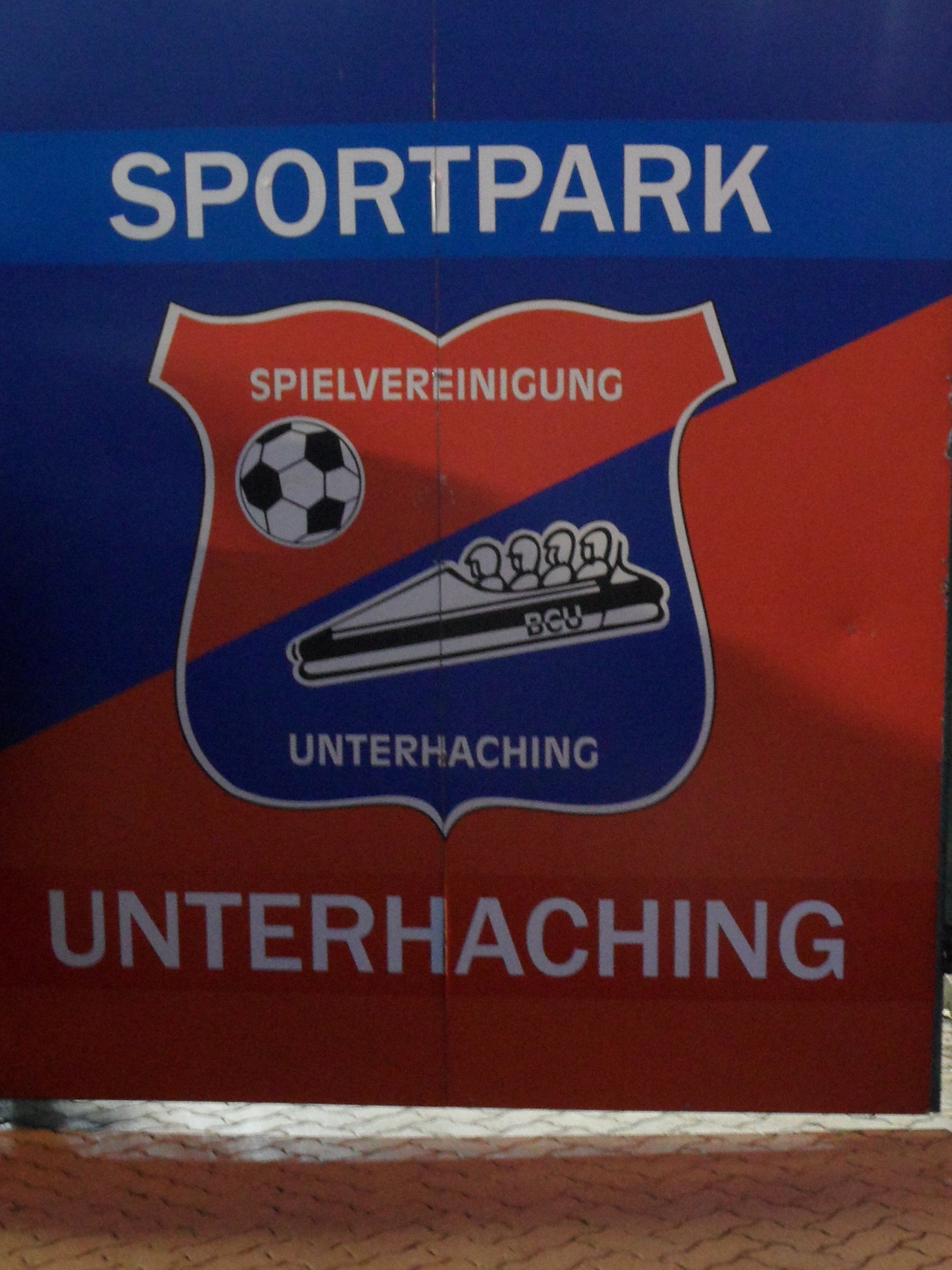 Unterhaching is certainly remote. Getting off the S-Bahn train the floodlights were visible in the distance – quite a way in the distance and with a rail line in between. Oh, and a police van with men with guns and dogs standing around, looking hungry (the dogs not the men). I simply followed the few other people who got off the train, assuming they were heading to the game. The walk took in a housing estate, a foot tunnel and a park that during the day would have been pleasant, but at night was ill-lit and contained a number of water hazards that would have been too tempting for the likes of Dave Richards. But it appeared I was nearing my target.