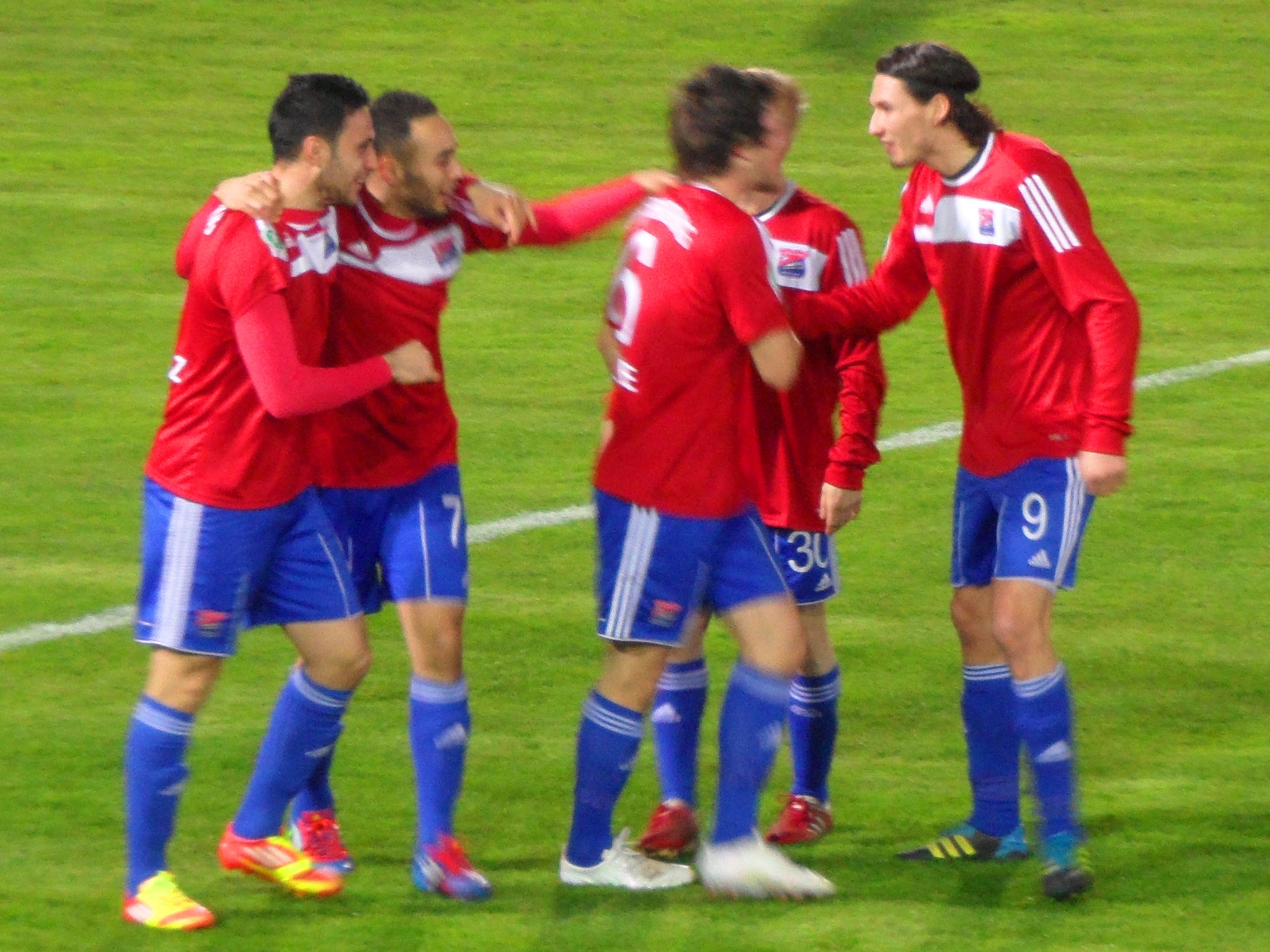 After a top up of German hospitality at half time (beer and sausages) it was time to put the gloves on as the temperature fell. The crowd also appeared as if they wanted to be somewhere else judging by the muted applause that welcomed the two teams back. Oberhausen continued their strong finish to the half and were unlucky not to take the lead in the opening minutes. But they didn’t have to wait long – fifteen minutes to be precise when Grant Forbes scored from close range. I knew it was Forbes who scored because the chap from the Oberhausen board then started calling everyone in his phone to tell them. He even called two wrong numbers and told them (my O-Level German coming back into play).