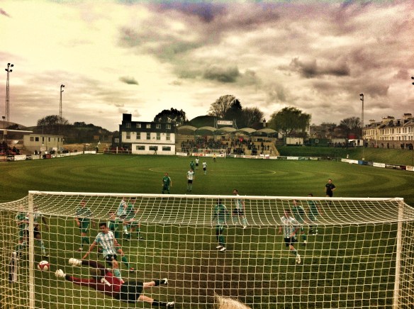 This game marked the closure of the Non League transfer window so the days in the run up to the game had seen some frenzied activity by Lewes boss Simon Wormull. Well, actually, it had seen one player exit and nobody come in. With a few injuries picked up recent weeks I offered my services to the club – my price? Just two pints of Harvey’s Armada and a Steak and ale pie. Cheap at half the price. I had hoped to announce the signing on Sunday morning as an April Fools joke but that was pushing the boundaries of reality a bit far.