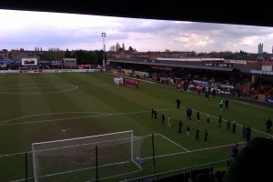 For the third game in a row, the daggers fans are occupying the western part of the ground (also known as the “traditional builders stand”) which also happens to be the newest. However, this is the first time that it has been allocated solely to the home support. While its great being in this part of the ground, it’s not right that the traditionally home terrace has been three quarters taken over by visiting fans. It’s also strange having an unimpaired view of the whole pitch.