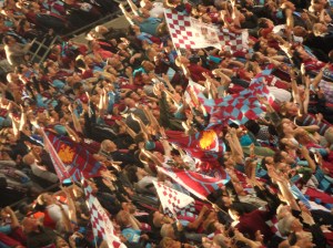 Originally I wasn’t going to attend the game. I had been lucky enough to be granted a media pass for the Champions League final – Bayern Munich versus Barcelona. Perfect game – Bayern in their home stadium, with the hopes of a city, state and nation on their shoulders and over 1 million applications for their tickets. Barcelona, the greatest club team in the world. It would be perfect. Except Chelsea went and spoilt it all. Chelsea qualify and flights all of a sudden disappear. By the time I get my official bit of paper I have the £750 option via Prague or the space in a 1974 Ford Anglia. Meanwhile West Ham have beaten Cardiff and the dilemma starts – forfeit the summer holiday to go to Bavaria for 20 hours or spend a few hundred on a tout ticket for Wembley.