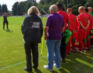 We arrived just on 3pm but there was a delay. One of the away team had used black table to shore up his shin pads. As all good footballer scholars will now know it is against a breach of those very important rules and so we waited for the player to find some red tape. Is it any wonder the FIFA are losing the respect of fans, players, managers and generally everyone in football with nit-picking ridiculous rules that serve no purpose at all. Was it dangerous? Was it likely to affect the game in any way? Was it going to confuse anyone? No, of course not. So keep your stupid rules out of the game. Rant (for now) over.