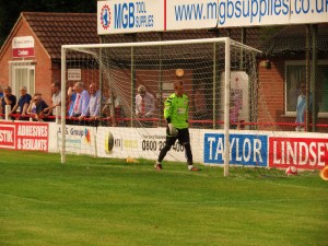 Lincoln hit the bar after fifteen minutes, when a flighted chip had the Thurnby keeper stranded off his line. But then all of a sudden the visitors remembered they had 10 outfield players, including two wide men and started to use their pace. And all of a sudden they looked the more dangerous side. Time after time they exploited the fullbacks including United’s Player-Manager Terry Fleming.