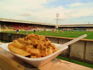 Firstly I have to give top marks to Boston for the finest portion of curry and chips I have ever had. Not a dish you will see on many take away menus down south, let alone in a football ground, it went down a real treat and set me up for a mouthwatering game. The home side certainly started the brighter, but as more often is the case, fell behind against the run of play when Da Costa was adjudged to have been fouled in the area and Gareth Arnison slotted the penalty home.