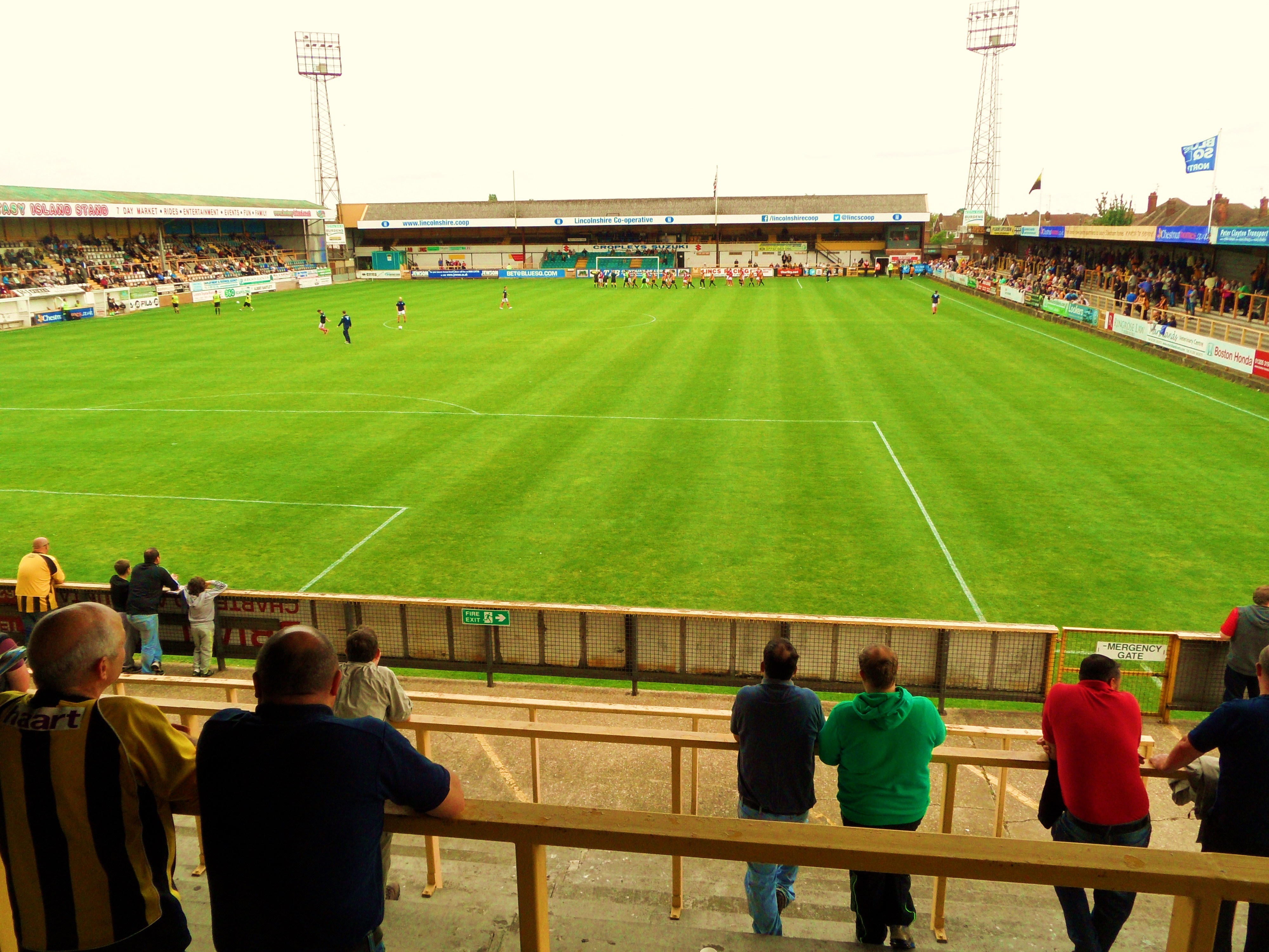 I got to Boston after an hour’s drive South-East from Lincoln, admiring the flat landscape. After parking close to York Road I took my place opposite the Fantasy Island stand. I assumed this was in honour of the 80’s trio Tight Fit and their smash follow-up to the number one single The Lion Sleeps Tonight but it wasn’t. It wasn’t even a shrine to the 70’s US TV series of the same name, featuring Tattoo. Oh no, this was part of a sponsorship deal with East Lincolnshire’s Premier amusement park, based in the exotic paradise of Skegness. However, it is neither on an island nor is it in any way part of anyone sane’s fantasies.