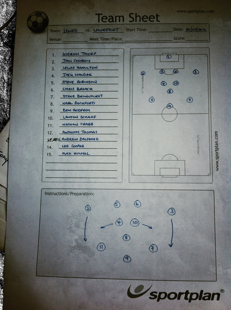 But back to the game. Lewes built on their first half domination and continued to hassle the Trawler Boys. Crabb had another good shout for a penalty when he was bundled over in the box by Greg Crane. Crane wasn’t having a particularly good afternoon, chasing the shadows of Godfrey and Crabb. At least it was better than the one he had on the opening day of the 2011/12 season when he scored an own goal for Lewes and was then sent off on the half hour mark.