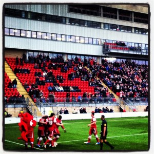 The game was won by Kevin Lisbie, a man who seems to have been played for as long as Clapton and Shilton. The Jamaican international put the home side ahead in the first half, converting a penalty after the very impressive Moses Odubajo was brought down, and then scored an 88th minute winner after Shrewsbury failed to clear their lines. It was a deserved victory, although the team’s main problem was clear to see – eleven league goals in sixteen games up until this afternoon tells the underlying tale of their season.