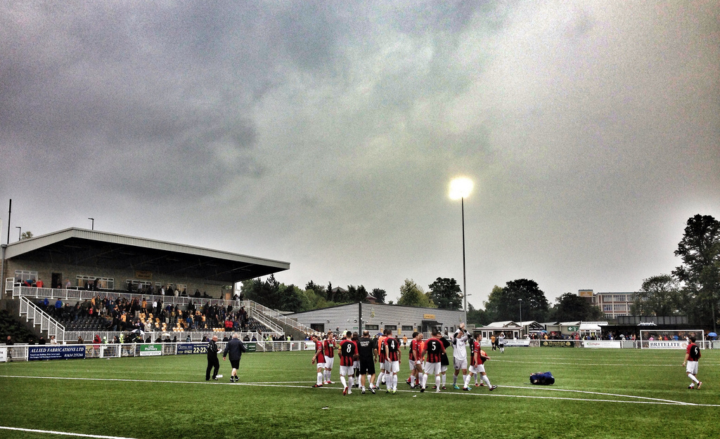 The 3G pitch certainly saved this game in the first instance. Two other games in the Ryman Premier fell by the wayside prior to kick off, and another couple in the league below wouldn’t see 90 minutes. In the longest ever Ryman season it is worrying that the fixture backlog has already begun. However, even the best 3G surface in the world can only cope with heavy rain so towards the end of the game the pitch was becoming unplayable in places. The style of play switched from short passing across the surface to the long-ball game as the rain was having unpredictable effects, meaning the best form of attack was defence.