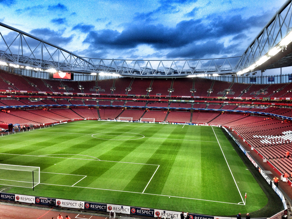 “A stadium befit of the Champions League..as long as you don’t want to see any replays” – You cannot deny the Emirates is the best club stadium in England, and one of the top ten in Europe. Ignoring the plush surroundings of the box I was in, and the outstanding food, it has been designed with the fans in mind. Decent leg room, comfortable seats, reminders of the glory years around the hoardings and the link back to the past with the clock from Highbury’s old South Bank. But which designer decided to put the video screens under the roof so that only people in the lower tier can actually see them. It appeared as if both teams were playing 6-a-side based on the display of the team line ups.