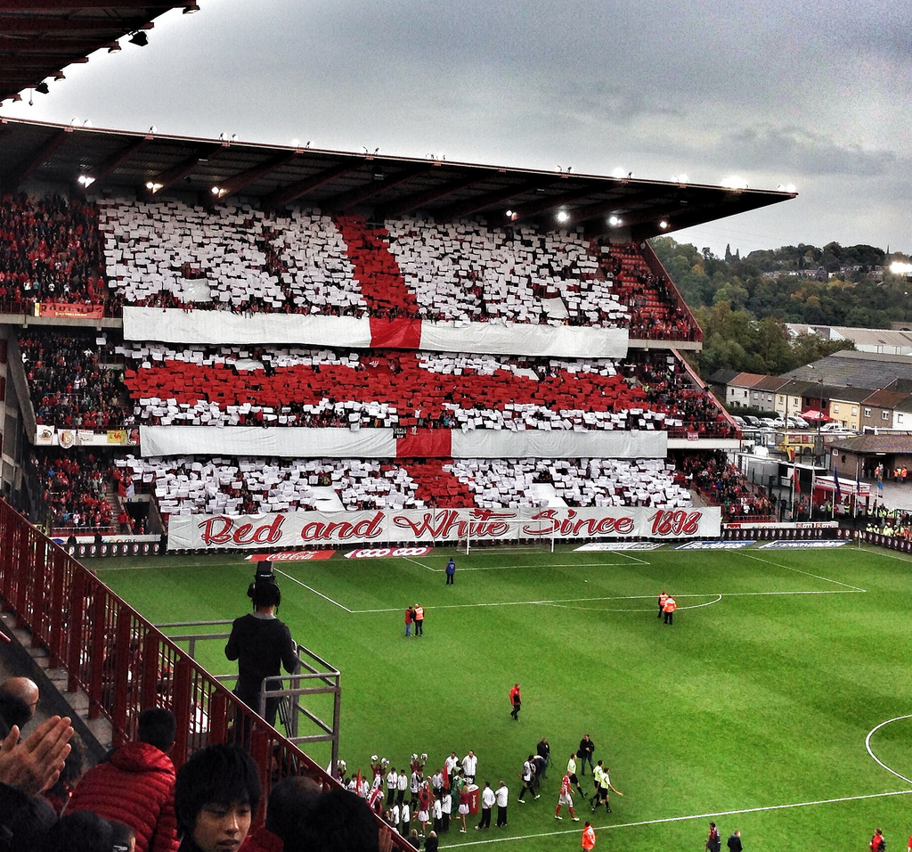 The stadium was rocking and as the teams emerged a huge St. George’s Cross was held up at the far end to welcome us English fans. Nice touch by the fans I thought to say hello. Crank the atmosphere up to eleven – it’s match time!