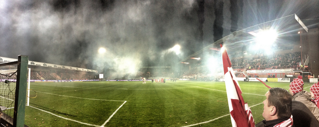 Time to watch some football. The Royal Antwerp fans didn’t seem to be too happy with their accommodation and started throwing everything they could get their hands on. For far too many years they had been languishing in the second division and the fans were growing weary of seeing smaller teams gaining promotion. They now had Jimmy Floyd Hasselbaink in the hotseat but he hadn’t exactly set the division alight. But perhaps this game would kick-start their season?
