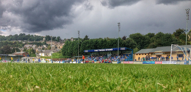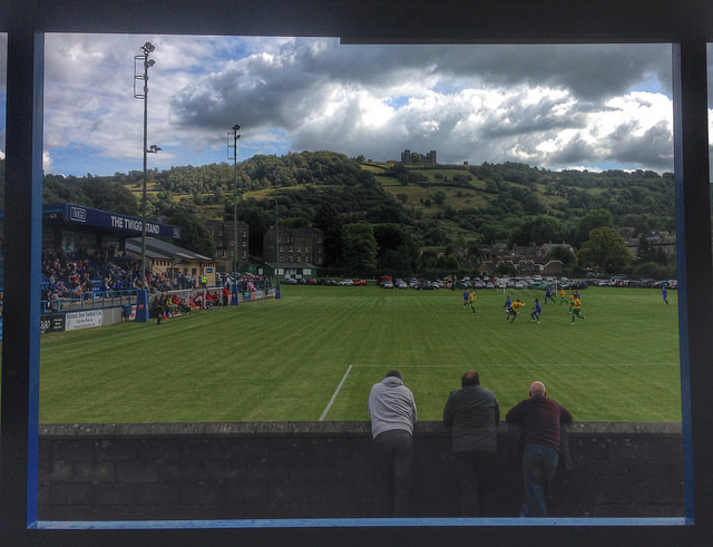 There can be few better feelings in life than watching a game of football with the sun beating down on your face, beer in hand surround by England’s green and pleasant land. Add in a view to die for and a pie with gravy and this could be Nirvana. I could have chosen one of twenty games in the Premier League or the Skybet divisions today that were within an hour’s drive of Northern HQ but instead I’m at Causeway Lane, Matlock, in the heart of Derbyshire’s Peak District. Even the sale of the naming rights to the ground (“The Autoworld Arena” conjures up images of Speedway to me) can’t spoil the beauty of the moment.