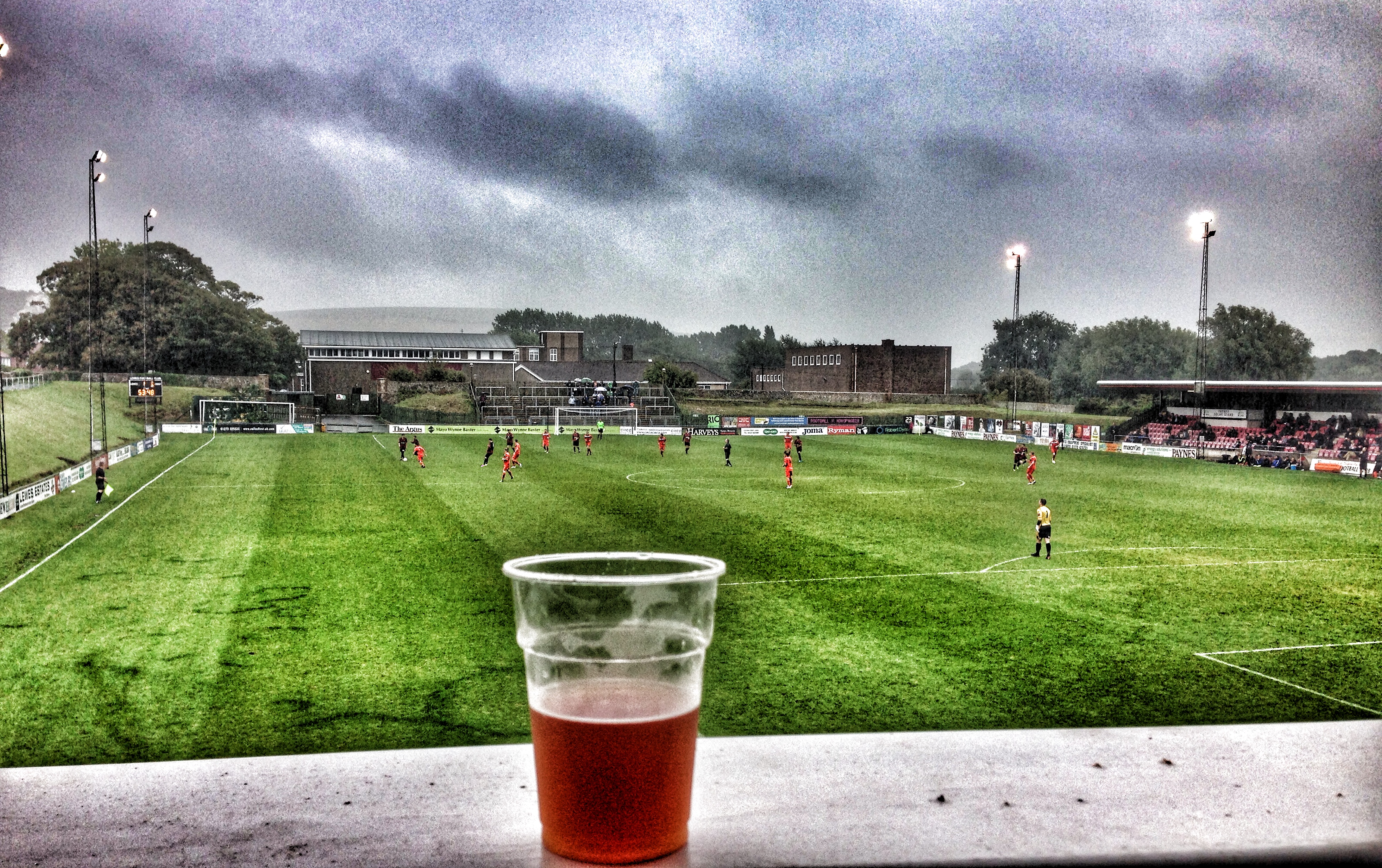 So what has this got to do with Bank Holiday Monday football at the Dripping Pan? Well, for starters our visitors today were Margate, one of the coastal towns that can claim the Goodwin Sands as part of their own. But more importantly, it is about the lessons that football has taught us about thinking we can follow certain paths. Make no mistake, in the driving rain at the very aptly named Dripping Pan this afternoon, Margate showed that they are head and shoulders above Lewes, and probably most teams in the Ryman Premier League this season thanks to a massive cash injection into the club.