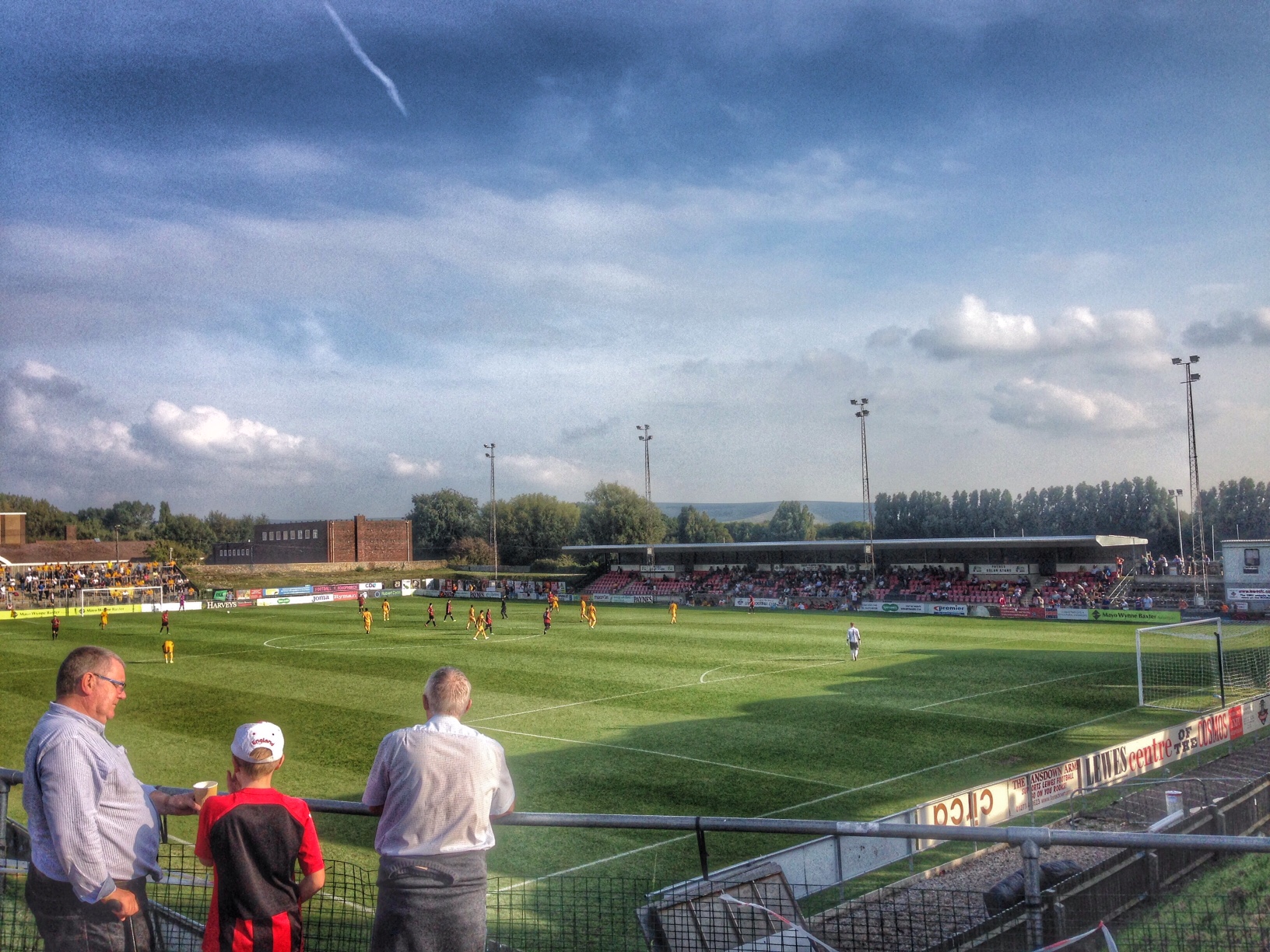 Today, Lewes host Ryman Premier League leaders Maidstone United. They are most-definitely in the B category. Having fallen as far as they could after a brief spell in the Football League, they are now on the rise again thanks to the facilities they have built. The Gallagher Stadium is their kingpin. A 7 day a week, 52 weeks of the year money-making machine. The cash is invested in improving facilities, developing the academy side of the club and of course on player wages. Sustainable growth that was only halted last year by the narrow-minded, selfish views of the Conference clubs in voting against 3G pitches. Less than a year later and the sentiment has changed and they are all of a sudden welcome again (noting to do with the Football League and FA clarifying their positions of course). With promotion now a possibility is it any wonder that the Stones have won 10 out of their 11 league games this season? Oh, and recorded a 10-0 win in the FA Cup. When we hosted Margate (definitely in the A category by the way) a few weeks ago their post match celebrations weren’t for the 5-1 over us it seemed but for the fact the Stones had lost away to Tonbridge Angels. Four games into the season and such paranoia?