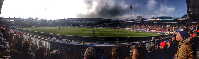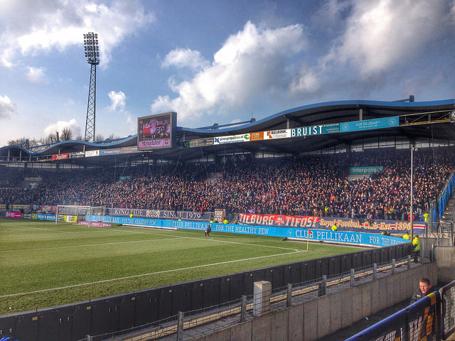 If Eindhoven was dead, then Tilburg at midday was in Rigor Mortis. We knocked up a bar owner, not in THAT way – he was in his mid-fifties and well passed his child-bearing years) before heading down to Koning II Stadion. Ajax’s fearsome reputation seemed to have been lost on the locals who were happily going about their Sunday afternoon, cycling and eating pancakes. But the closer you got to the stadium, the more the atmosphere built. In the club bar, with the obligatory Europop playing, fans were discussing the recent revelations about match fixing (well, that’s what it sounded like over a soundtrack of Melissa Tkatz and Franky Gee). In early 2015, journalists from the publication Volkskrant revealed that Willem II had been involved in games that appeared to have been influenced by an “Asian gambling syndicate” in regard to games against Ajax and Feyenoord, played over five years previous. Not much the current owners, players and officials of the club can do about that now.