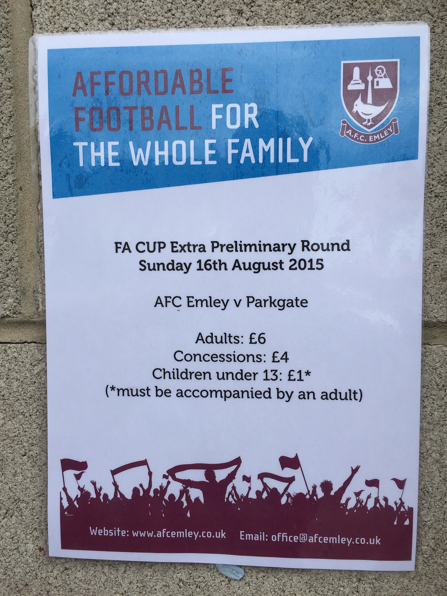 AFC Emley 7 Parkgate 1 – The Welfare Ground – Sunday 16th August 2015