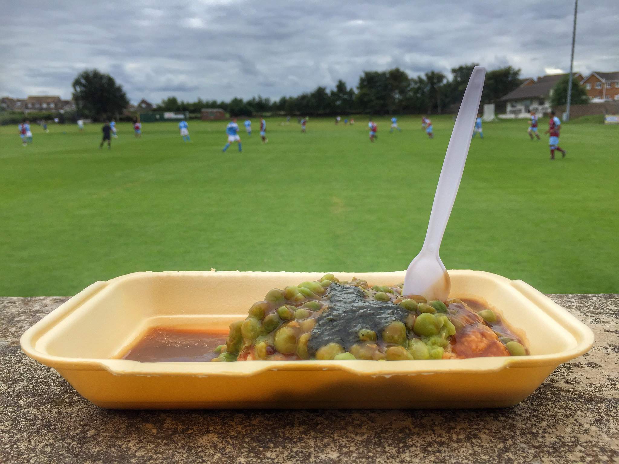 From the moment we paid £6 (SIX!) to get into the ground and saw the first prize in the raffle was a “do-it-yourself” breakfast, an upmarket spin on a meat raffle – well, it contained at least two non-meat products, we knew we had arrived in one of the closest places to Non League heaven. Decent food, served with a smile and just for a pound (pie, peas and gravy – tick), locals who loved to chat and one of the best team displays I’ve seen for a long long time.
