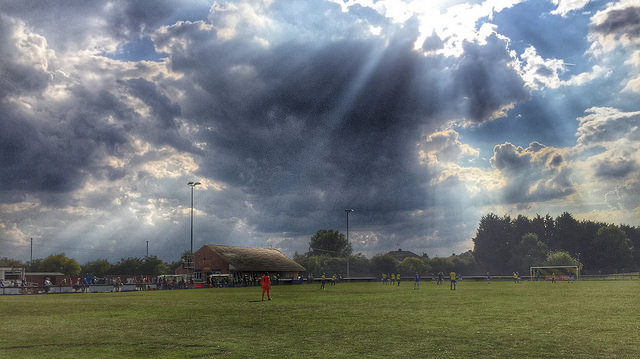 The bright blue skies were slowly being eaten up by dark, grey thunderous clouds. On the pitch Leek Town looked the stronger of the two sides, controlling the midfield and constantly looking at a ball over the top of the back four. Grice was the main threat and he didn’t hesitate when presented with a one-on-one chance, as Conor Green was unable to deal with his header, and the striker didn’t wait for McDonald to come out, instead just smashing the ball into the back of the net. Grice completed his hatrick with a fine solo effort when it appeared that the opportunity had gone with ten minutes left.