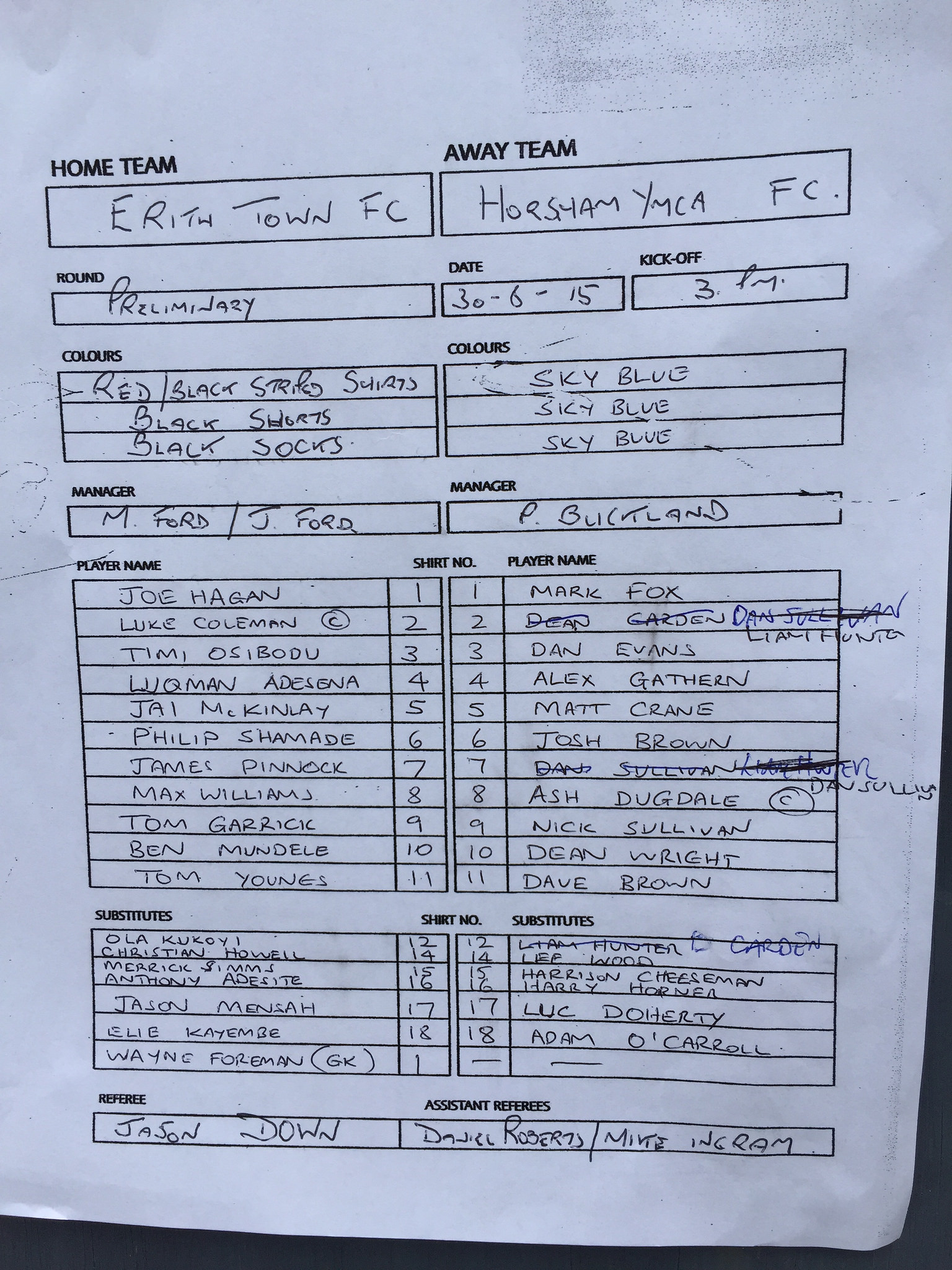 Erith Town 2 Horsham YMCA 4 – Badger’s Mount – Sunday 30th August 2015