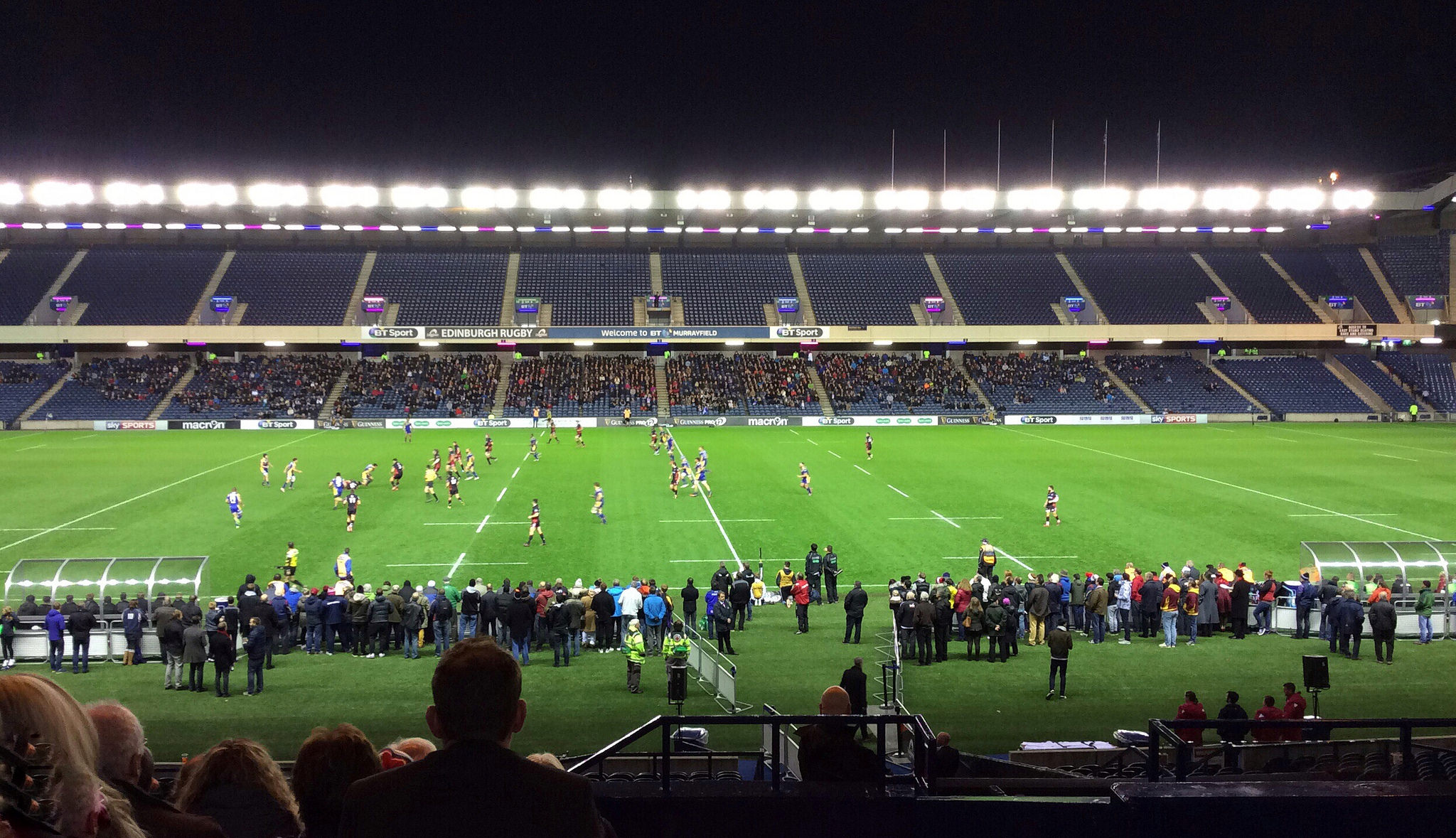 It soon became clear that the train option wasn’t really an option at all. Whilst I didn’t fancy driving 300 miles in a day, that was going to be my only option if I wanted to squeeze in three Saturday games. I’d have to swap the Brewdog Brewery tour option for a case of IrnBru but that’s the level of sacrifice you often have to make as a Football Tourist. So the plan would be Aberdeen-Brechin-Raith Rovers. Not a bad haul in a day. But first I had a Friday night bonus game just four stops on the tram from my hotel, albeit of the oval ball variety as Edinburgh would be taking on the Italians from Zebre (Italian for Zebra in case you wanted to know) in the Pro12 League.
