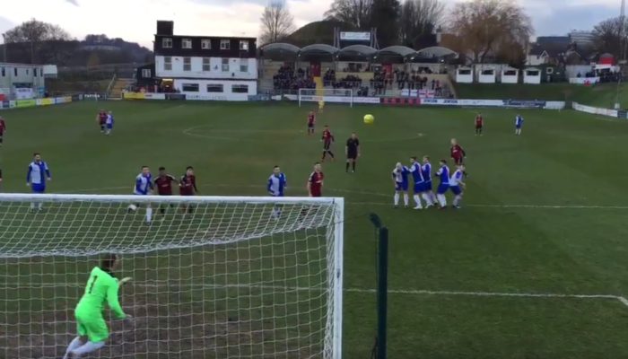 The first instruction is written down and is given to me. As I head down the steps to tell Ross that James Hammond should take the free-kick, I can hear Darren shout “Get ‘Ammo to take it..” Hammond does indeed take the free-kick and he curls it perfectly into the top corner to give us a 1-0 lead. It’s going to be a long afternoon.