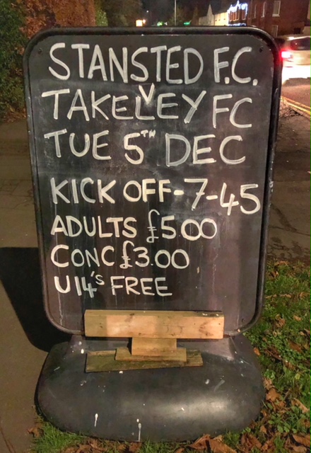 As luck would have it (genuinely), there a game to go to see almost on the doorstep of the airport. Not just any old game either – a local derby pitting one of the front-runners for the Essex Senior League title with a team currently on an alarming and rapid slide down the table. In these parts Stansted FC versus Takeley is talked about in hushed tones, normally reserved for the likes of Ossett Town versus Ossett Albion or even the Dunstable Derby.