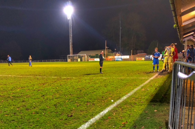 I actually knew a resident of the village, who had promised to accompany me to the game. Kevin is an accountant by trade and supports Everton, so he needed some escapism from the reality of pessimism. What better way to lift the spirits than watching a Non-League game on a day and freezing night along with a few dozen other hardy souls.