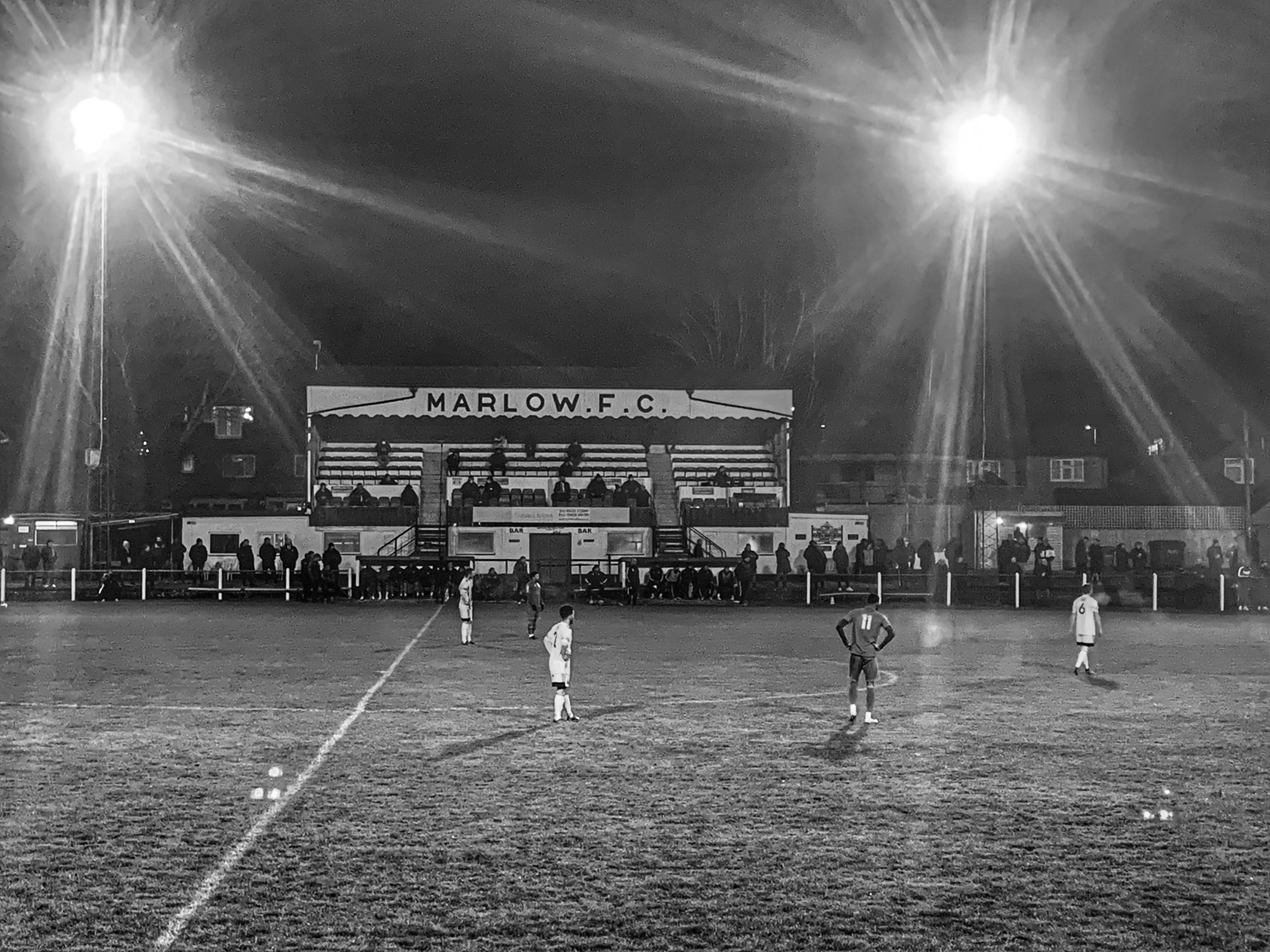 A lot of the enjoyment you get from visiting a new ground is rarely related to the actual match itself. It is the people you meet, the quirkiness of the ground, the back stories and the food and drink. Marlow ticked all of the above (OK, a cup of tea and a Mars bar may not be a royal feast, but it is most welcome on a freezing cold night). However, when you get a game high on controversy, which compels you to not take your eyes off the action, and you throw that in the mix then you have a memorable occasion.