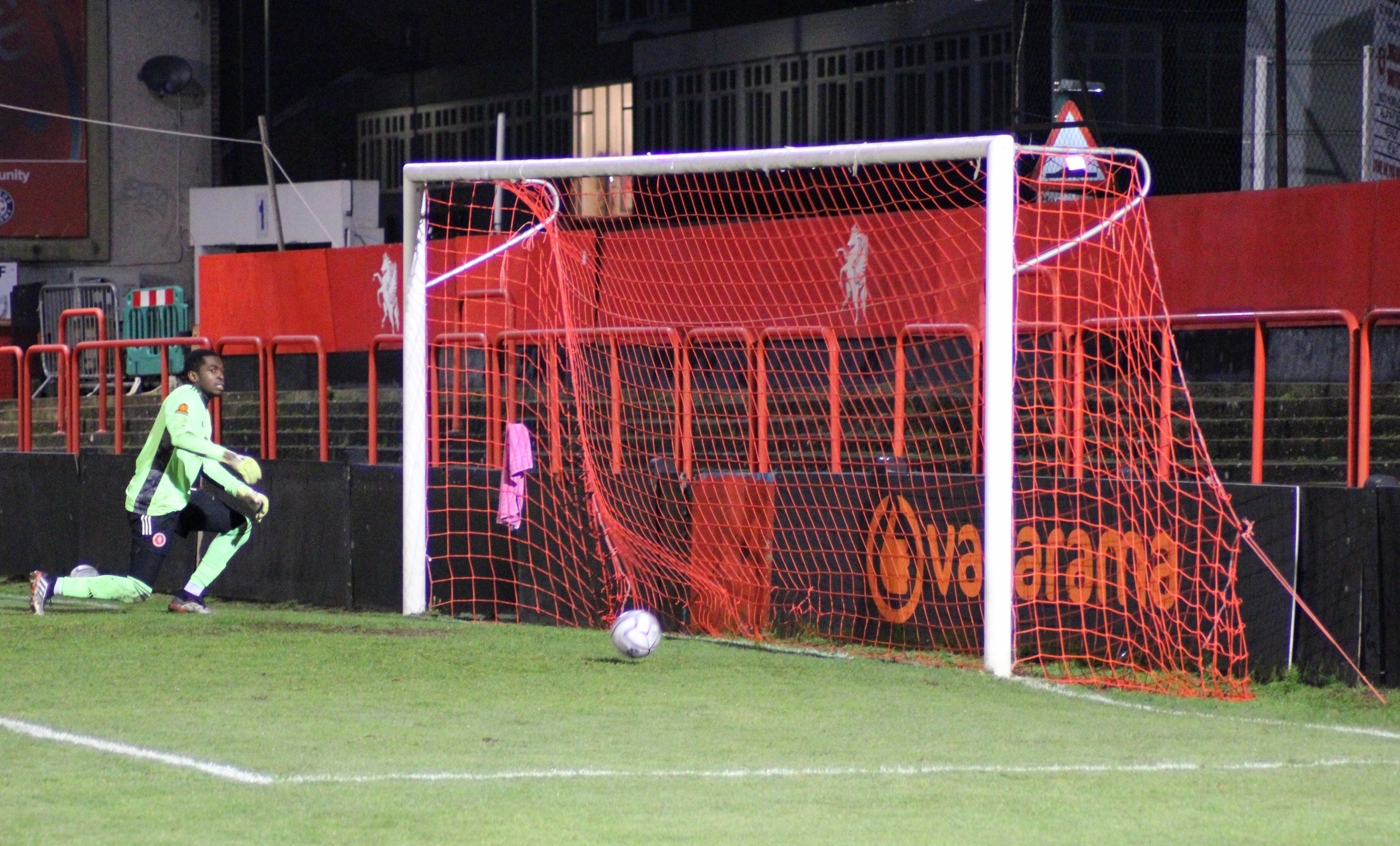 However, against the run of play, the visitors took the lead when Jeffers latched onto a loose ball in the area to slot the ball home. The talking point of the half, if not the game, came in the 44th minute when Mitchell Weiss ran into the back of Welling’s full-back Chiori Johnson and to everyone’s amazement, the referee gave a penalty that Jeffers converted. After the referee blew for the break he was approached by the Welling management team asking for any logical explanation of the penalty decision.