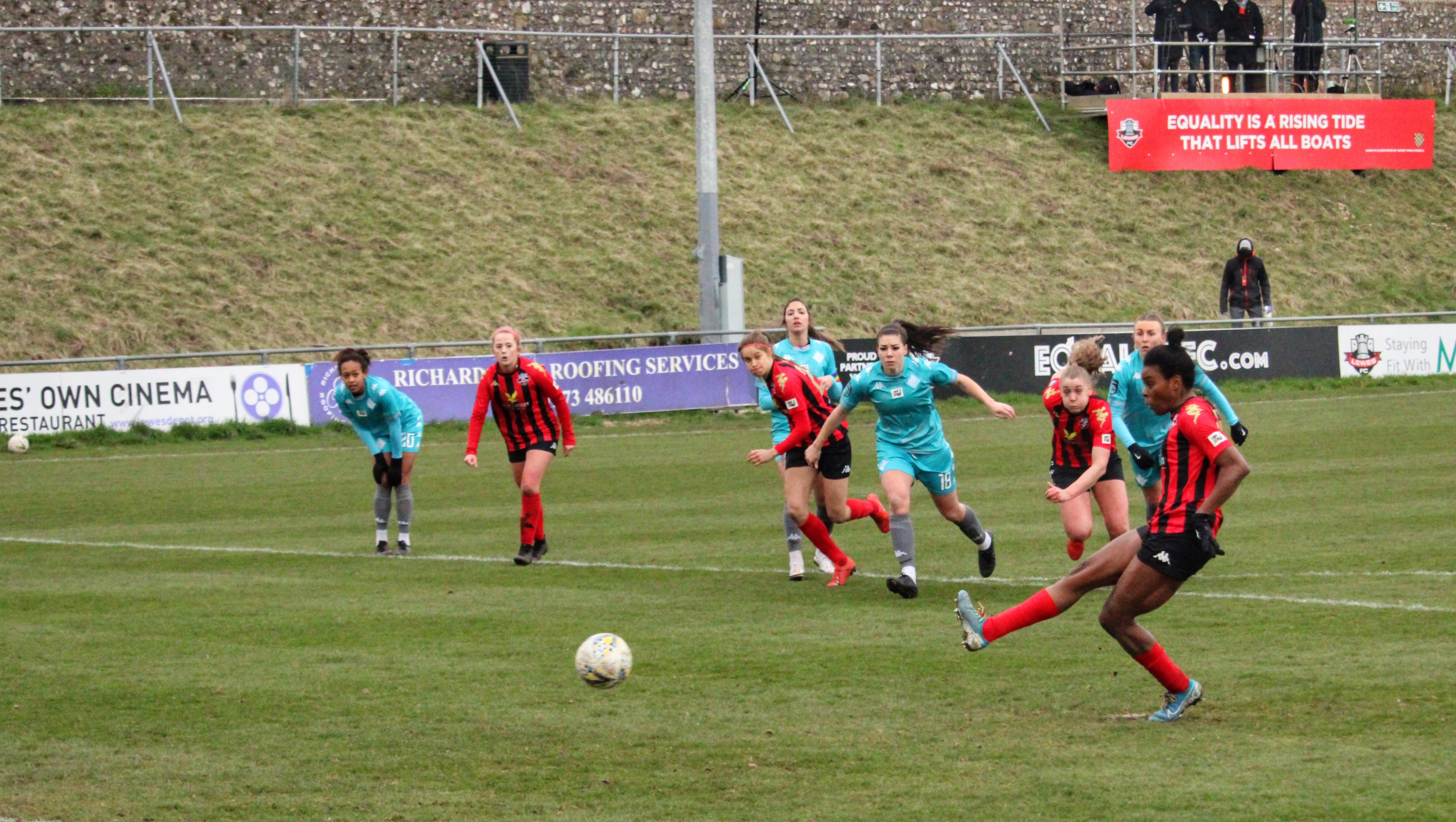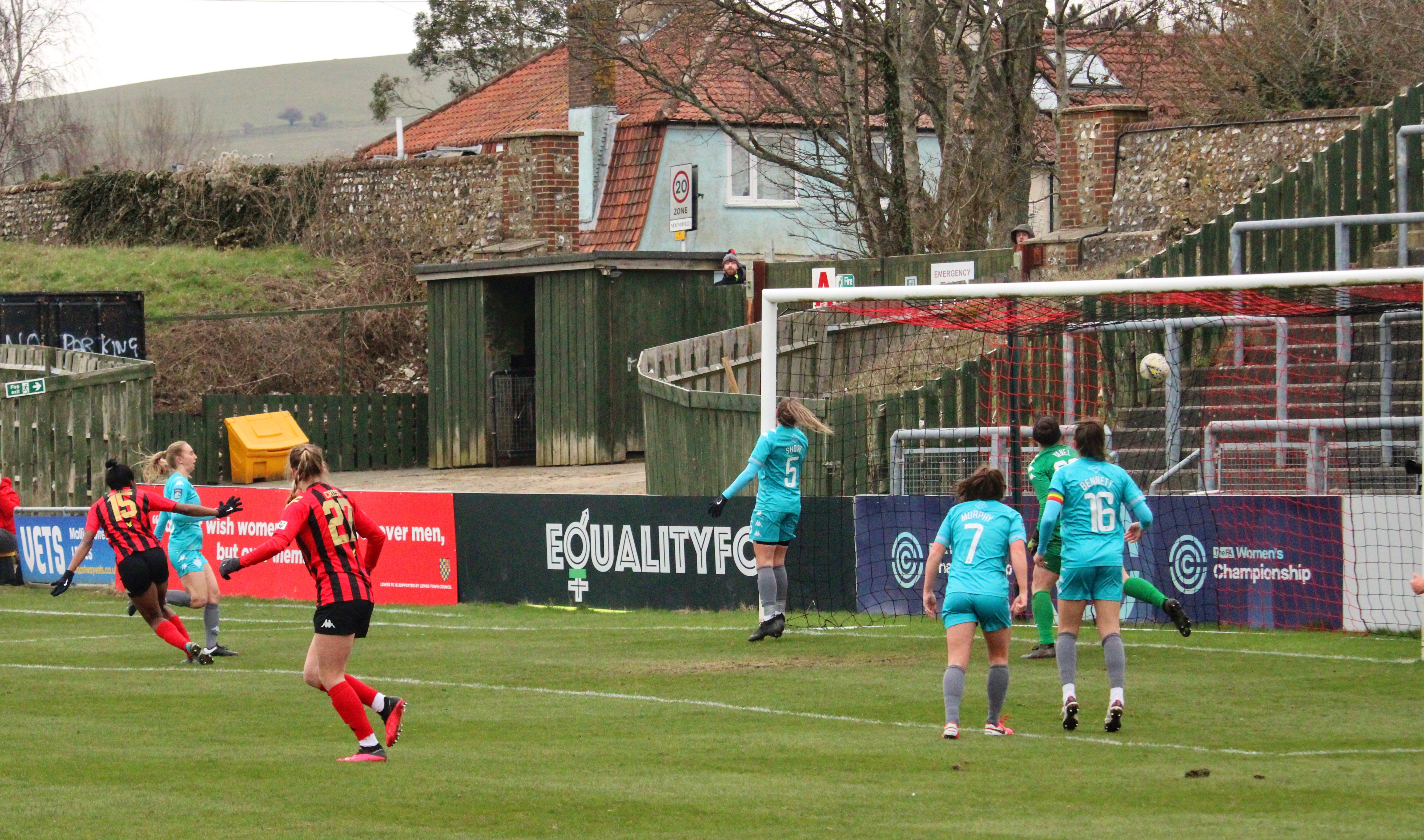 With the four January transfer window signings starting again, secured thanks to the recent sponsorship deal with Lyle & Scott, Lewes looked to take the game to one of the league’s in form teams. Nearly 500 minutes without conceding a goal and arriving in East Sussex on the back of consecutive wins, it was no surprise that they started the stronger of the two but it was the home side who took the lead when the impressive Lucy Ashworth-Clifford caused chaos in the box the Zoe Cross’s effort hit the post but the ball rebounded kindly to Ini Umotong who smashed the loose ball home.
