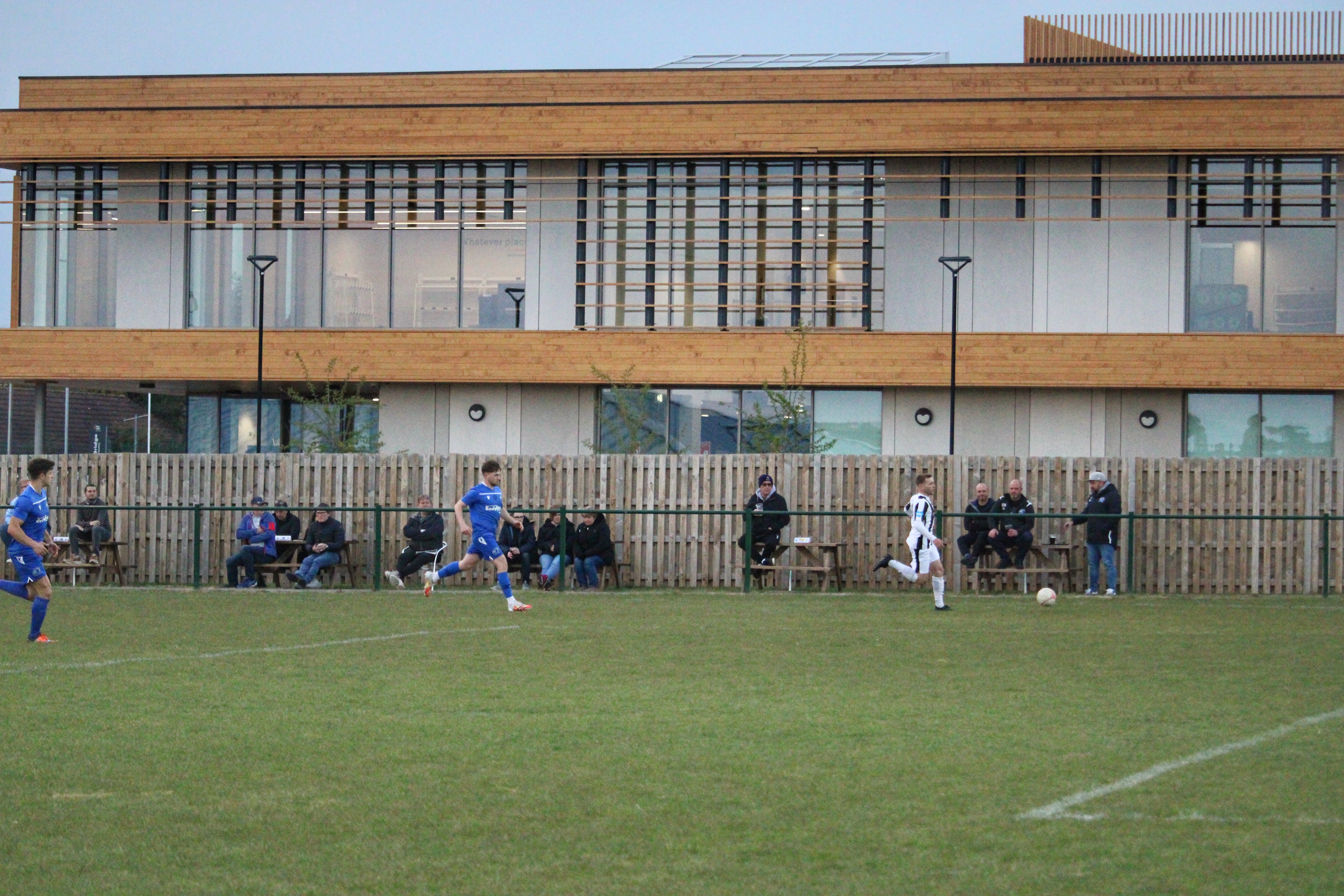 The game kicked off with the bustle of a busy night on the adjacent 3G pitches and the hum of chatter outside the bar. The visitors were the quickest out of the blocks, peppering the Broadbridge Heath penalty area but the keeper was rarely tested – shots from distance weren’t exactly on target, well at least if it was assumed they were aiming at the goal.