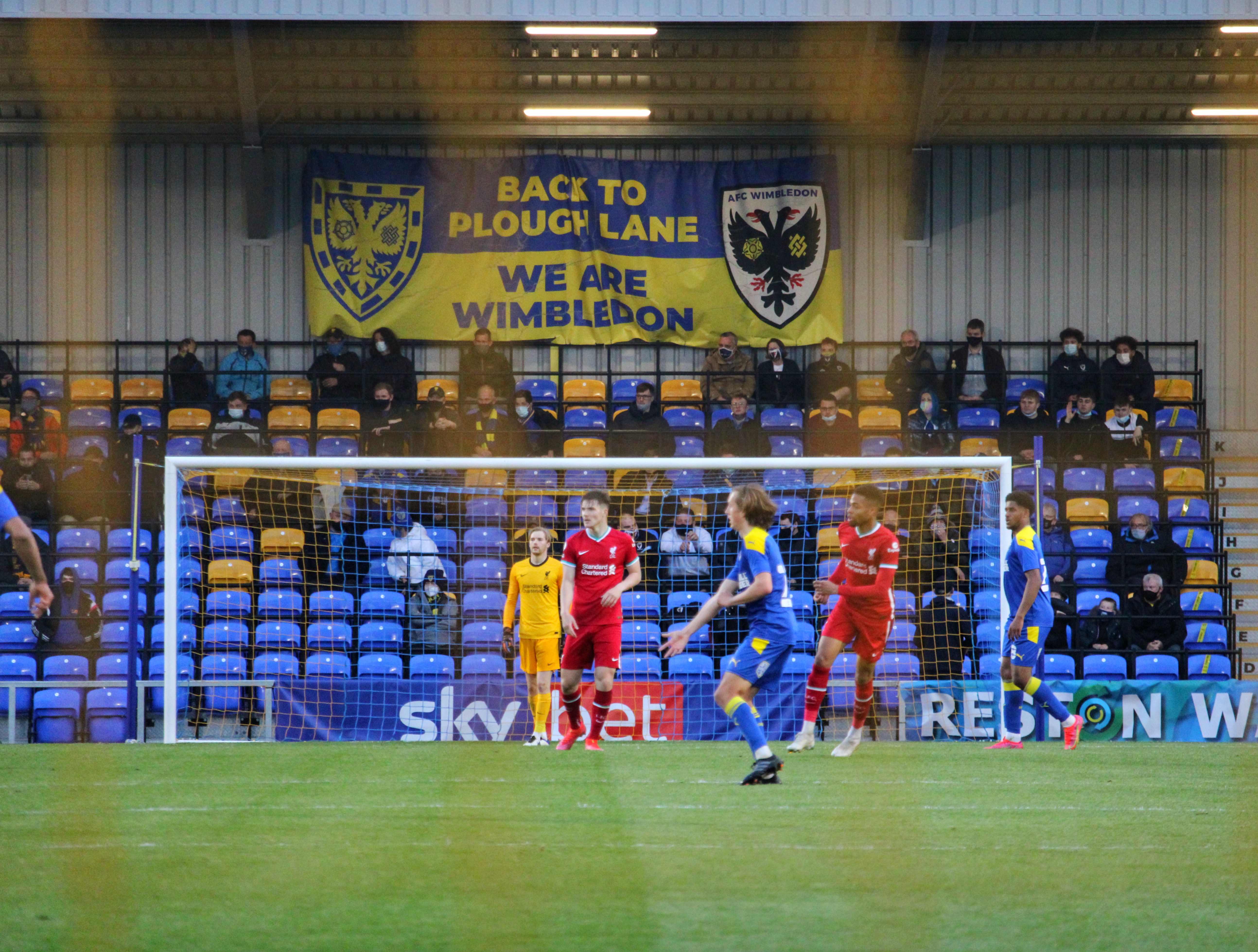 “We are home”….An AFC Wimbledon fan sprints to the exterior wall of the stand as I pass him and he plants a kiss on the concrete. It isn’t just the relief of finally being able to watch a game of football in the flesh, but returning home after decades away. Whilst the stadium had been hosting football for some months, tonight was the first opportunity for a small number of AFC Wimbledon fans to experience it for themselves.