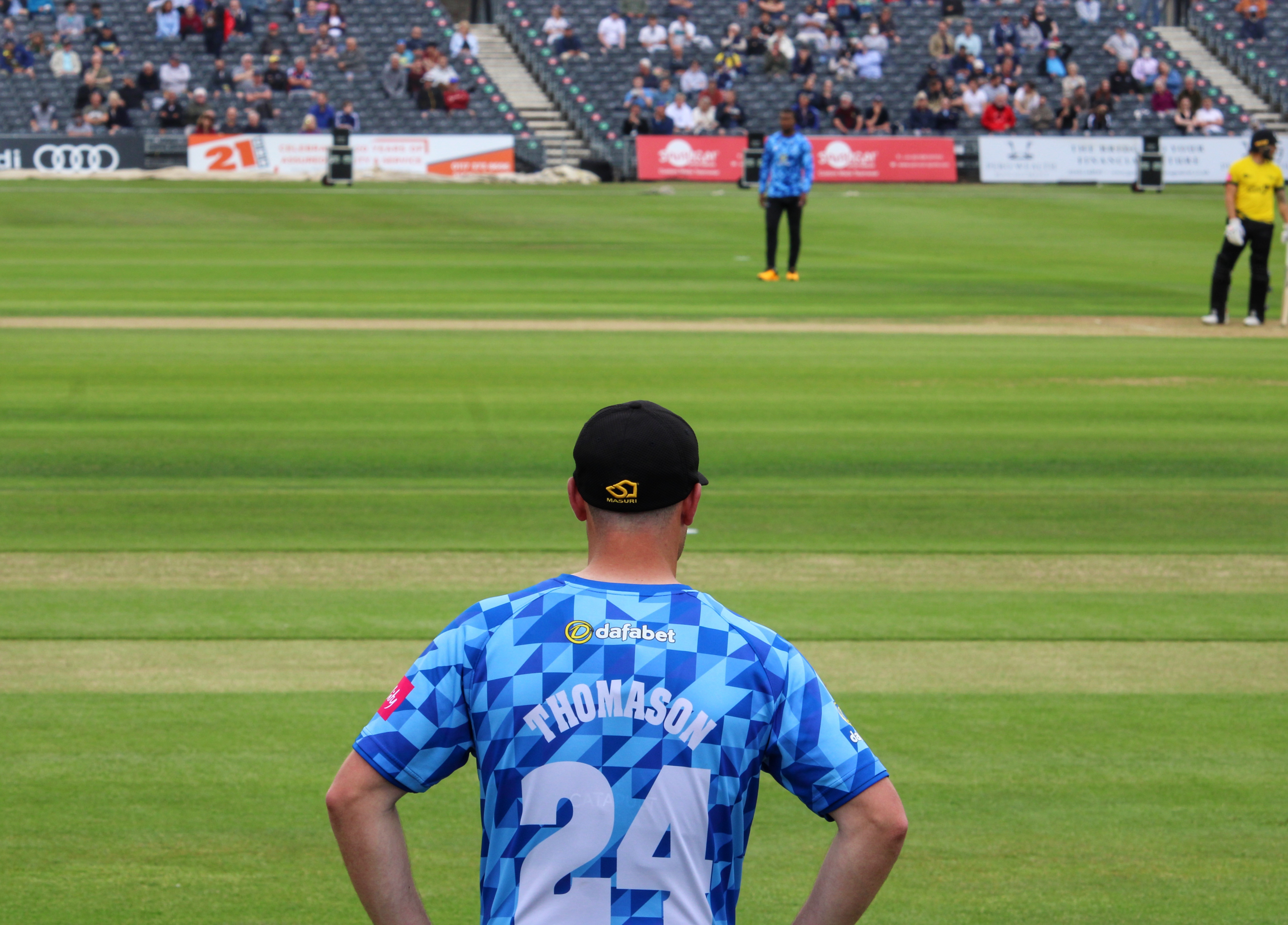 The crowd in my area were enjoying themselves. You have to feel sorry for the fielder who is on the boundary and Aaron Thomason drew that privilege. “You can’t bat, you don’t bowl and your fielding is shite. Why are you in the team Thommo?” came the shout from the chaps at the front of the stand. Thomason cocked an ear, encouraging them to shout louder – all in good nature. The blast of ‘Sweet Caroline’ over the speakers got everyone up and singing, briefly forgetting the action on the pitch.