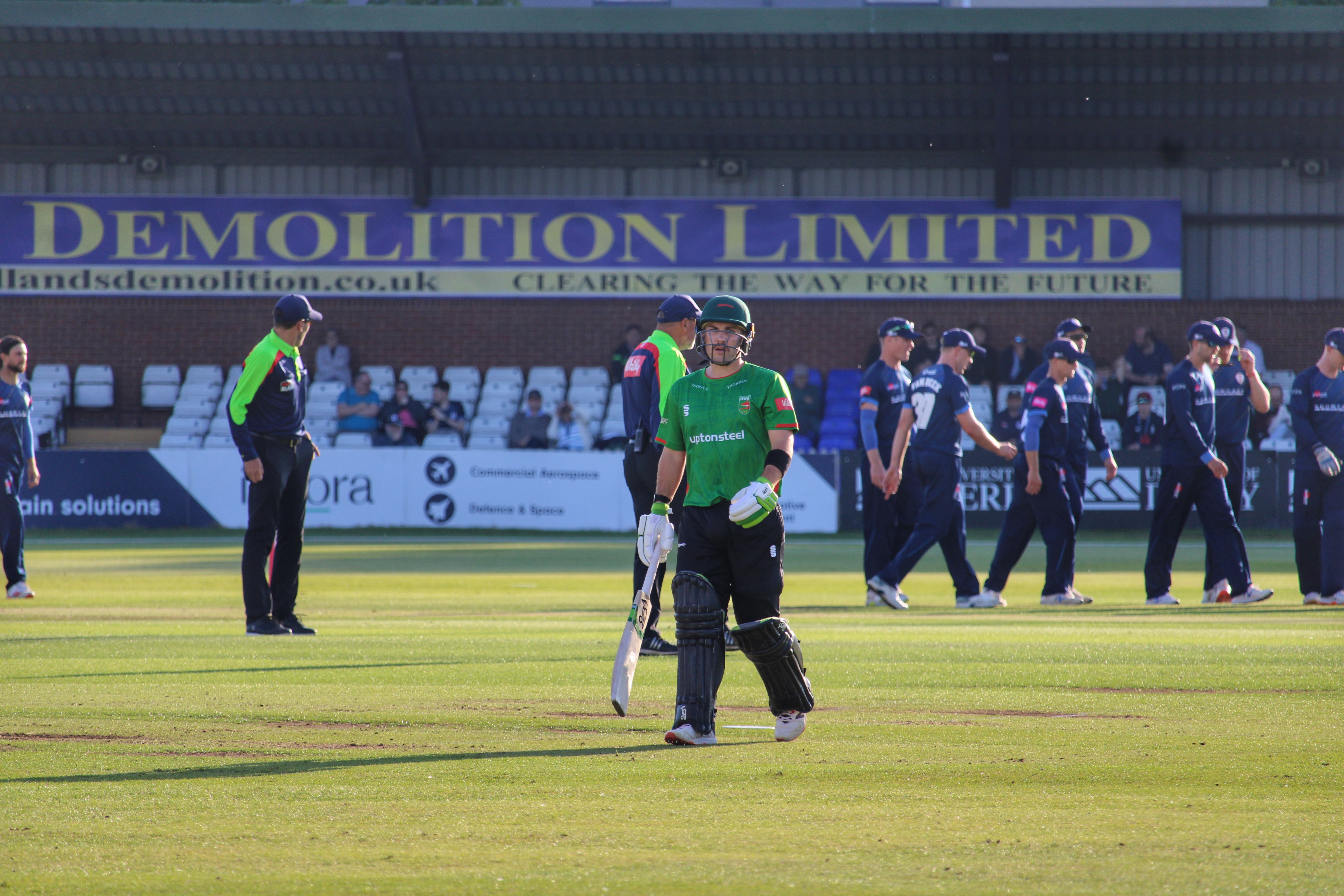 The County Ground is a smart, intimate venue for cricket. No big stands, beautiful background with the sun slowly setting on one of the longest days of the year. Would that cause an issue for the Leicestershire batsman, especially with a pace attack? It seemed so after the first over faced by Steel, who struggled to get anything on the ball from van Beek. But he soon got into his stride and the opening pair scored almost eight an over before Inglis was caught with the score on 39. Steel’s 46, Ackermann’s 37 and finally Kimber’s 53 off 28 balls saw Leicestershire reach a decent 174, which included an exciting last over that saw three sixes and two wickets.
