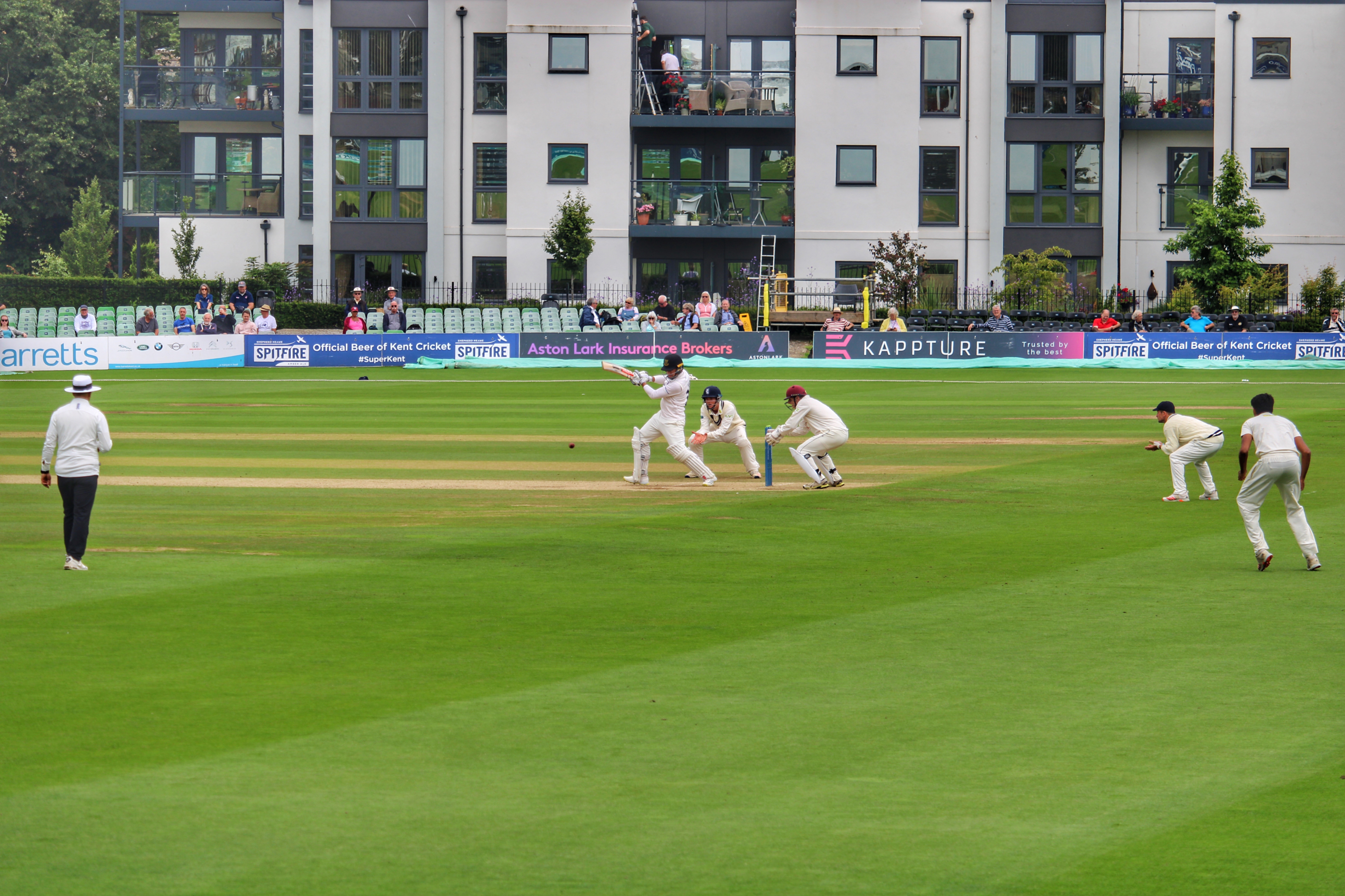 I arrived in a sunny Canterbury just in time to see the eighth Kent wicket fall without any further score. Trailing by 60 runs with just two wickets left, the pendulum had firmly swung in the visitors direction, but a career best 30 not out from Hamid Qadri got Kent to within sixteen runs by the end of the innings.