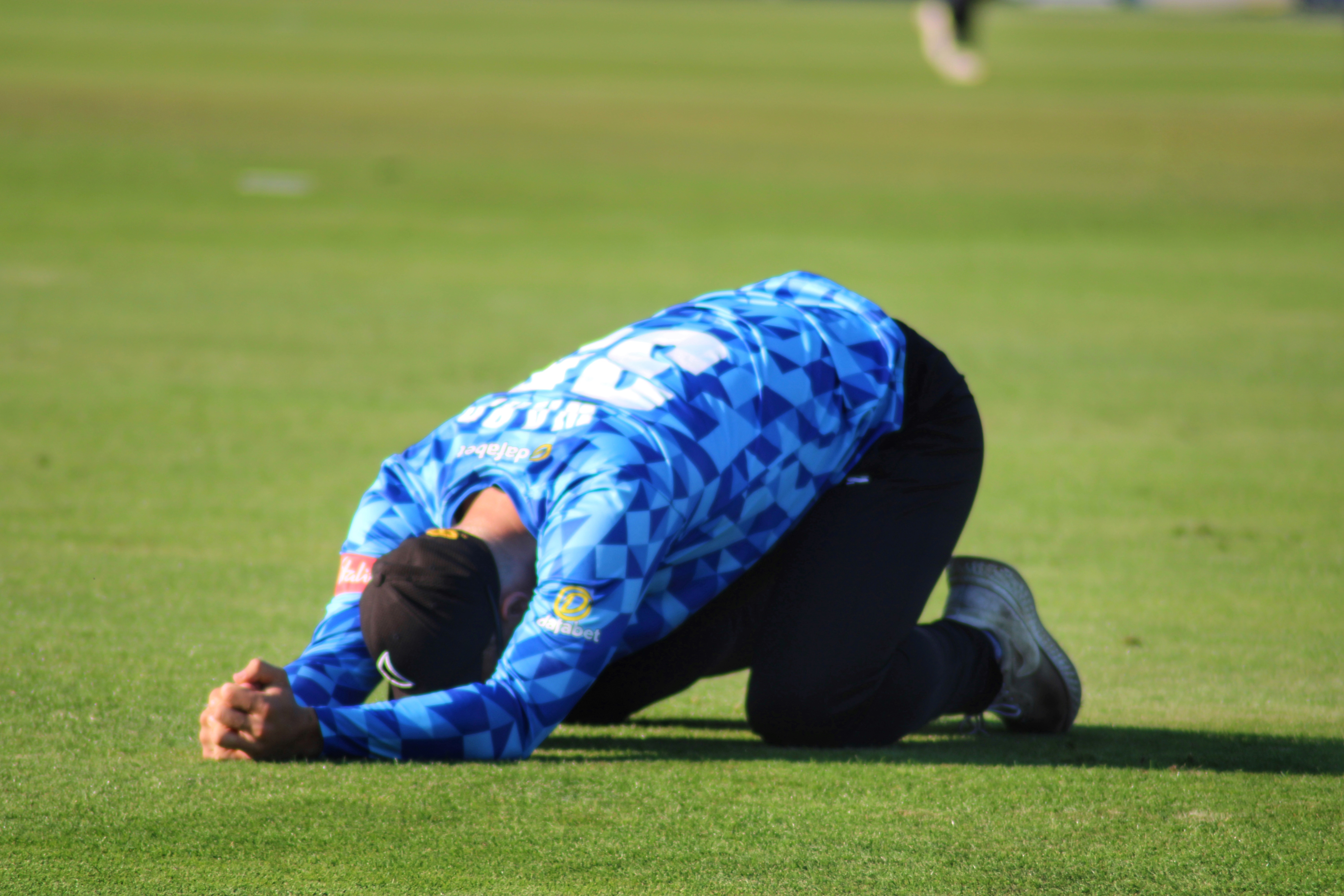 Rawlins, still wearing his outrageous luminous orange boots, put Sussex on course for victory with an innings of 33, supported by Wiese’s 21. A 17th over mini collapse saw Ward and Rawlins dismissed in successive balls, both caught by Kuhn off Podmore, which led to a situation where, with just two runs needed, Sussex didn’t have a batsman ready, with Rashid Khan eventually coming to the wicket still putting his pads on, before hitting the winning runs of the first ball of the 18th over.
