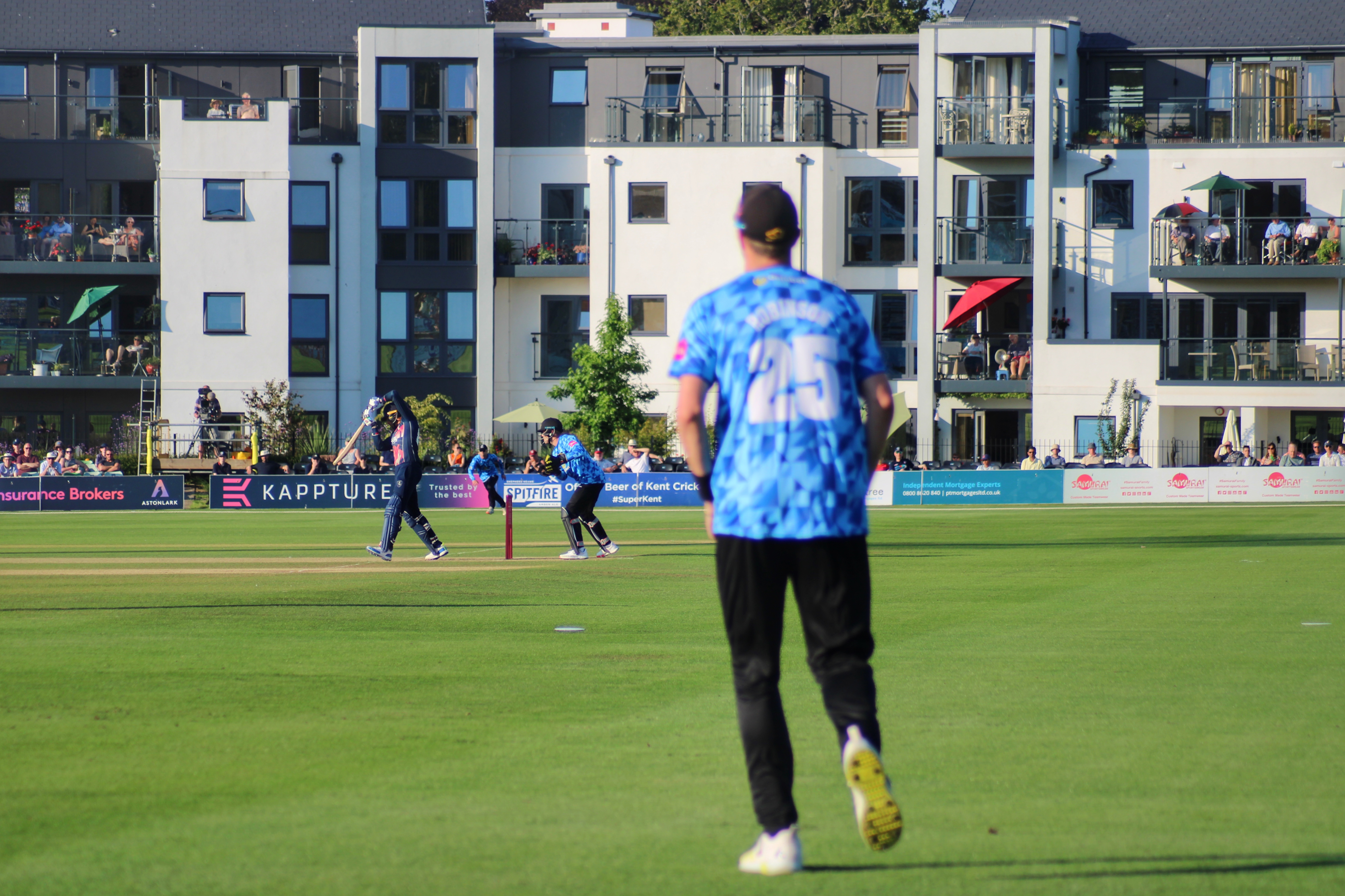 Each T20 venue has had a different feel and atmosphere. The raucous nature of Birmingham and Headingley, the appreciative atmosphere at Lords and the Oval, the laid back chilled vibe at Hove, Derby, Glamorgan and Northampton and the lively pockets of fans at Bristol and Southampton. Here at Canterbury it could probably be summed up as polite, bordering on sleepy. Most of the game was played in a quiet hush, whether that was down to the heat or in reverence to the retirement flats on the far side of the ground. I’m sure with more fans allowed in for the quarter-final, it may be a completely different atmosphere.