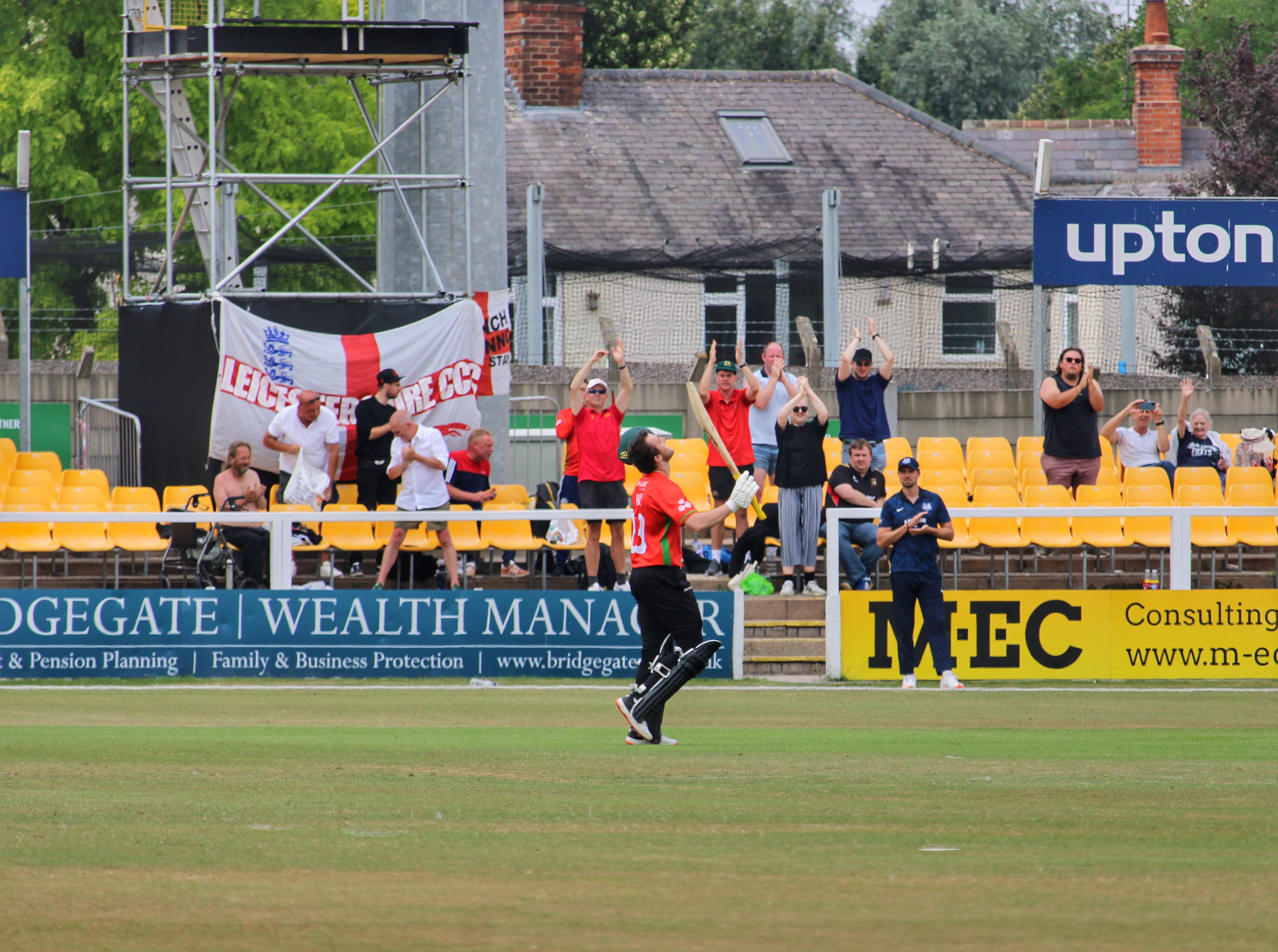 Grace Road doesn’t have the formality of the bigger county grounds – I’d put it in the same bracket as Northampton – surrounded by housing on all sides, with perfect viewing angles on all sides with an appreciative crowd and one where having forty winks after lunch won’t get you drowned in beer, or sporting creative writing on your head.