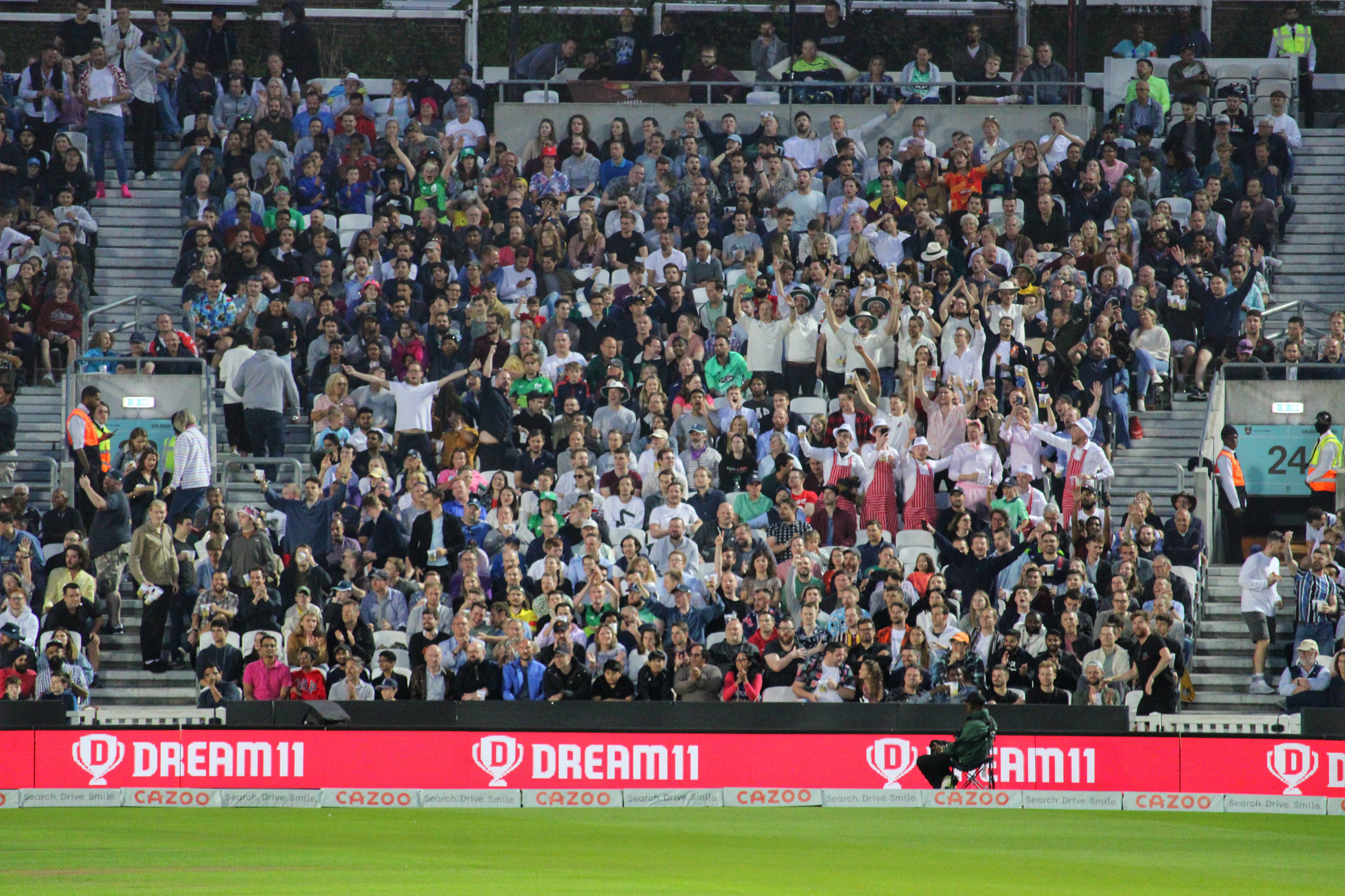Whilst the game may have not lived up to expectations, the atmosphere did. Boisterous rather than rowdy, with none of the shenanigans we saw at Lords in the opening games. There were fans from seven of the eight Hundred sides that I saw – the conspicuous absence of anyone wearing a London Spirit top or hat perhaps down to their poor performance in the competition after the hype before hand. The bars were closed just after the second innings started but the fans didn’t have to wait too long before they would be in the pubs around The Oval.