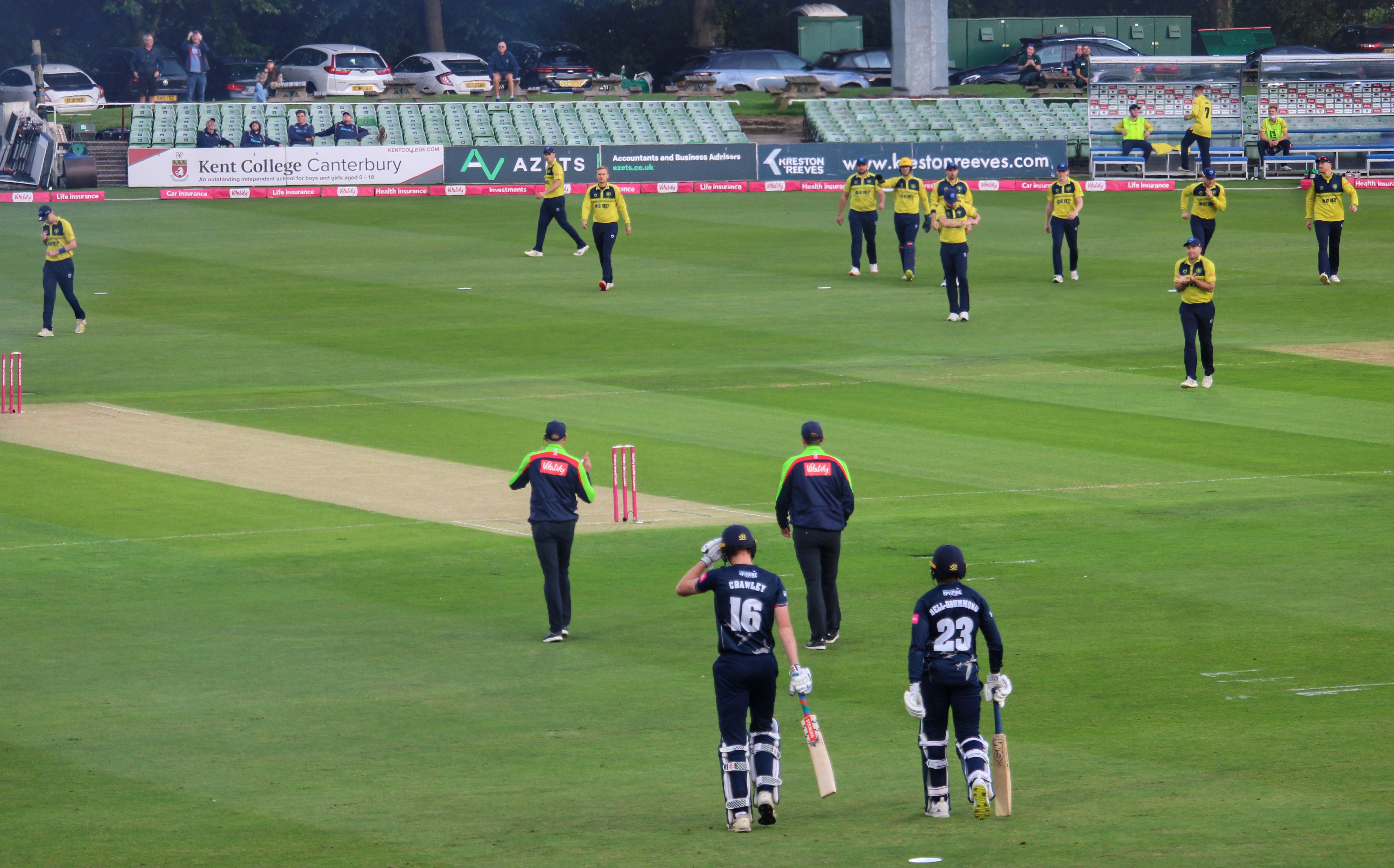 All three quarter finals so far had gone to the team batting second, and all had come from the southern section of the group stage. With that in mind, the visitors on winning the toss put Kent into bat and had their first reward relatively quickly, when England one-day opener Zac Crawley departed for just four with the score on 9. Denly and Bell-Drummond eased things along reaching 44 in the sixth over before the former departed.