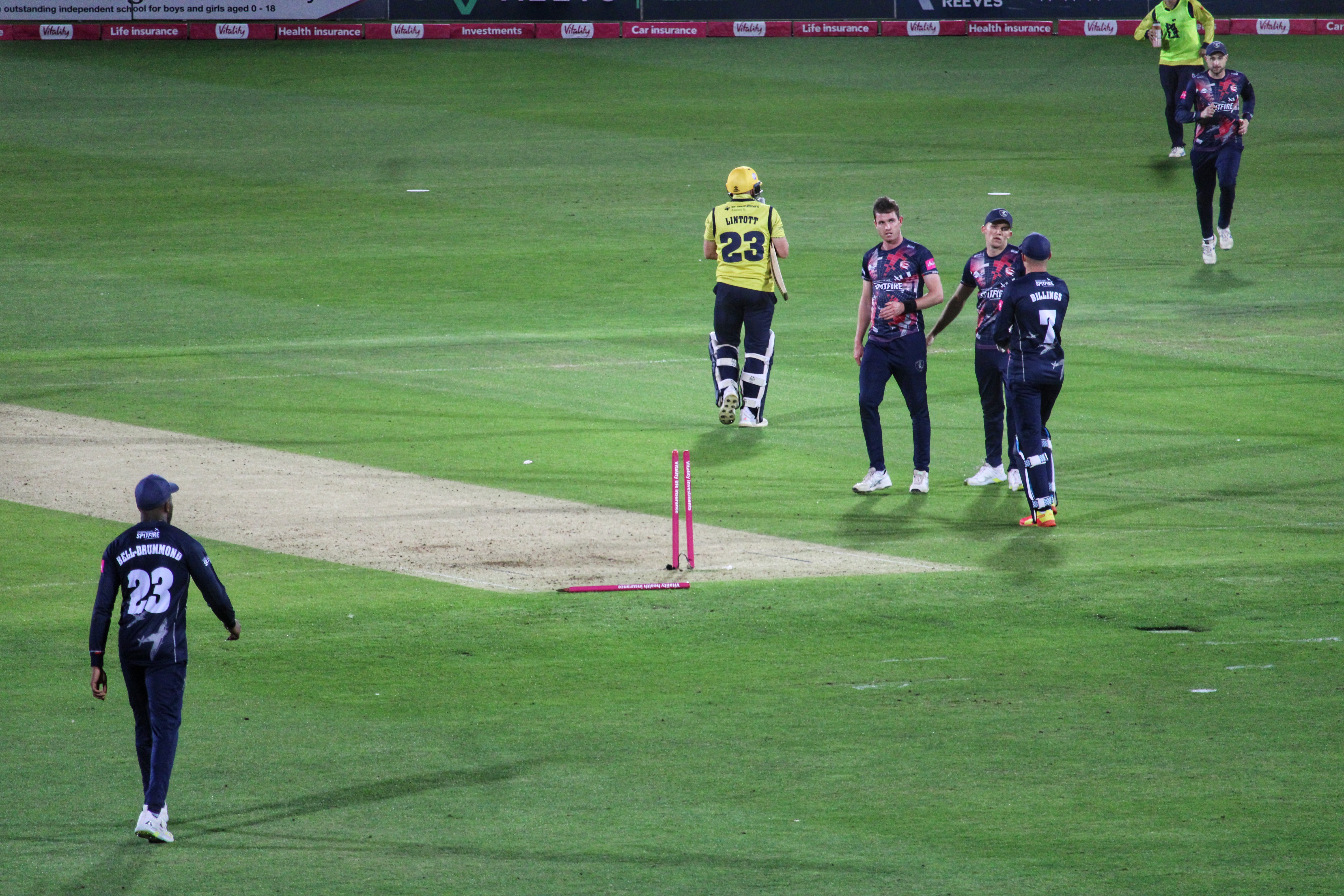 When Lintott was finally removed, thanks to a stunning catch on the boundary for 41 off just 20 balls, including two sixes into the retirement flats, The Bears were done. They needed 25 off the final over and Milnes wrapped it all up, taking his fourth and the final Bears wicket on the last ball of the game to finish with 4-24. Batsmen win games they say but in this instance the fielding performance of the Kent side certainly can claim a major assist.