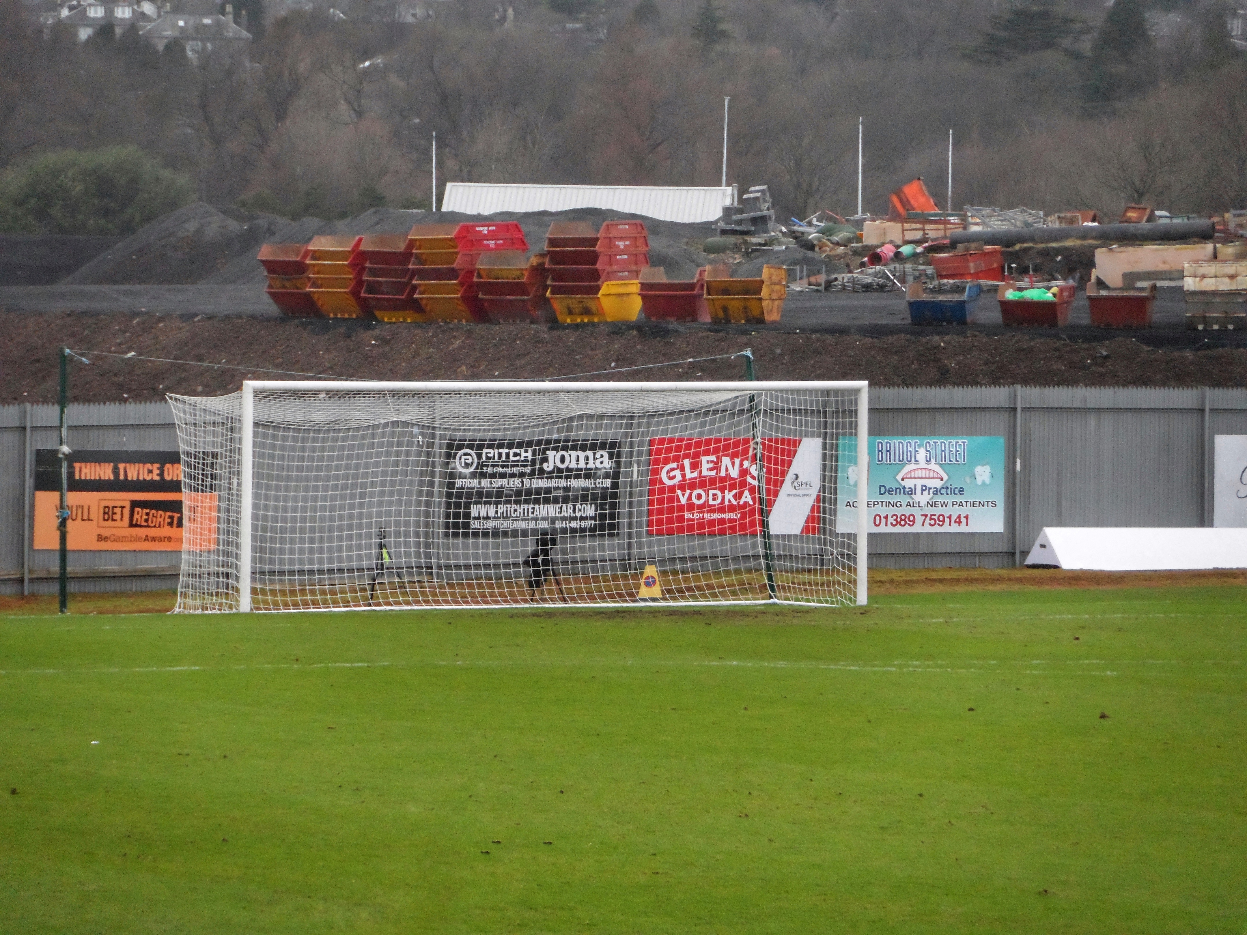 Whilst the home side started the day six places and 15 points below Airdrie, they looked the brighter of the two sides in the opening 45 minutes, denied a couple of spectacular goals by players trying, but failing to connect with volley-able crosses. At the other end the ball was cleared off the line by an Airdrie player, denying his own team of a certain goal and a goal direct from a corner was ruled out for a NFL move by a visiting player on the Dumbarton keeper.