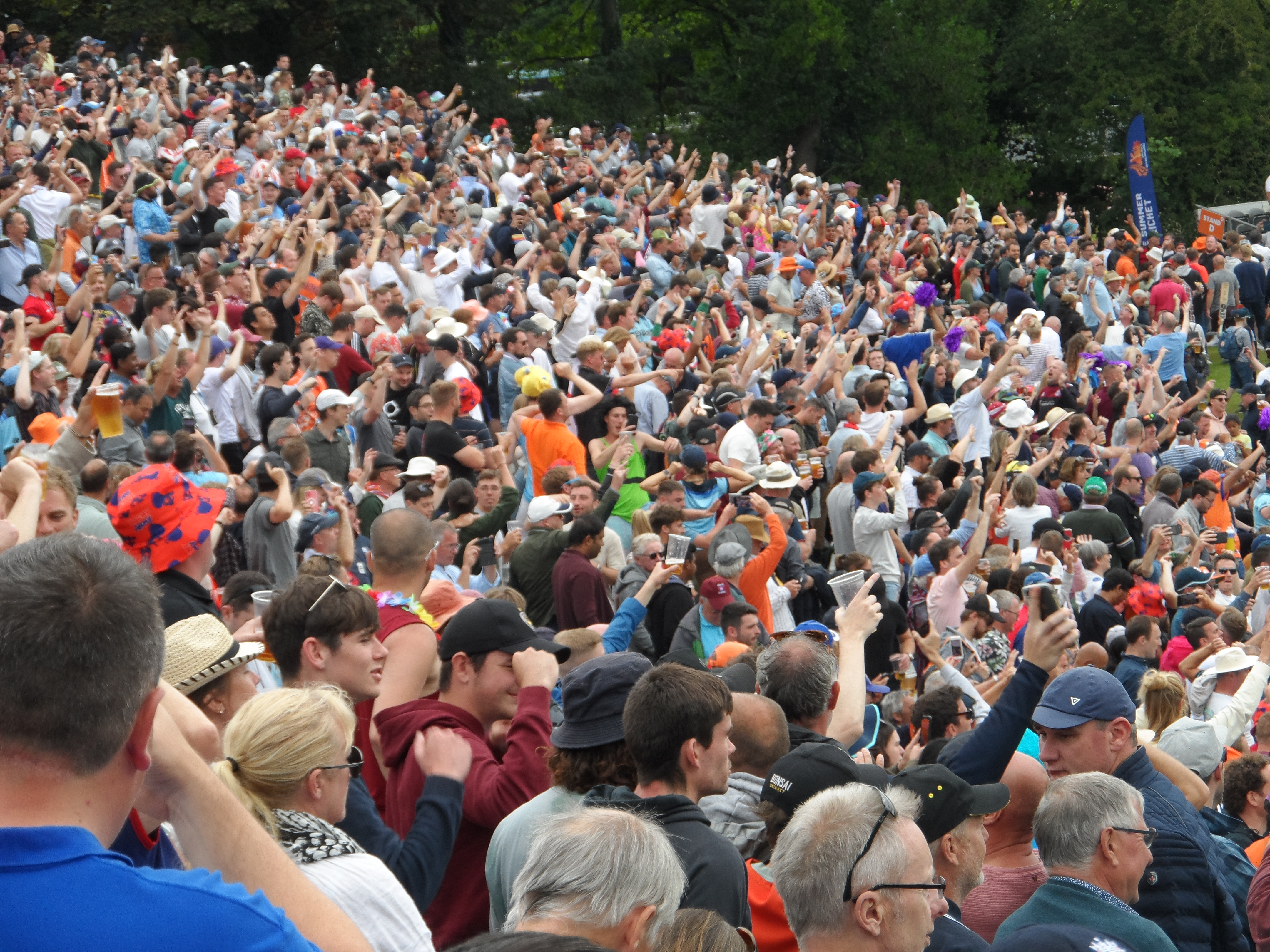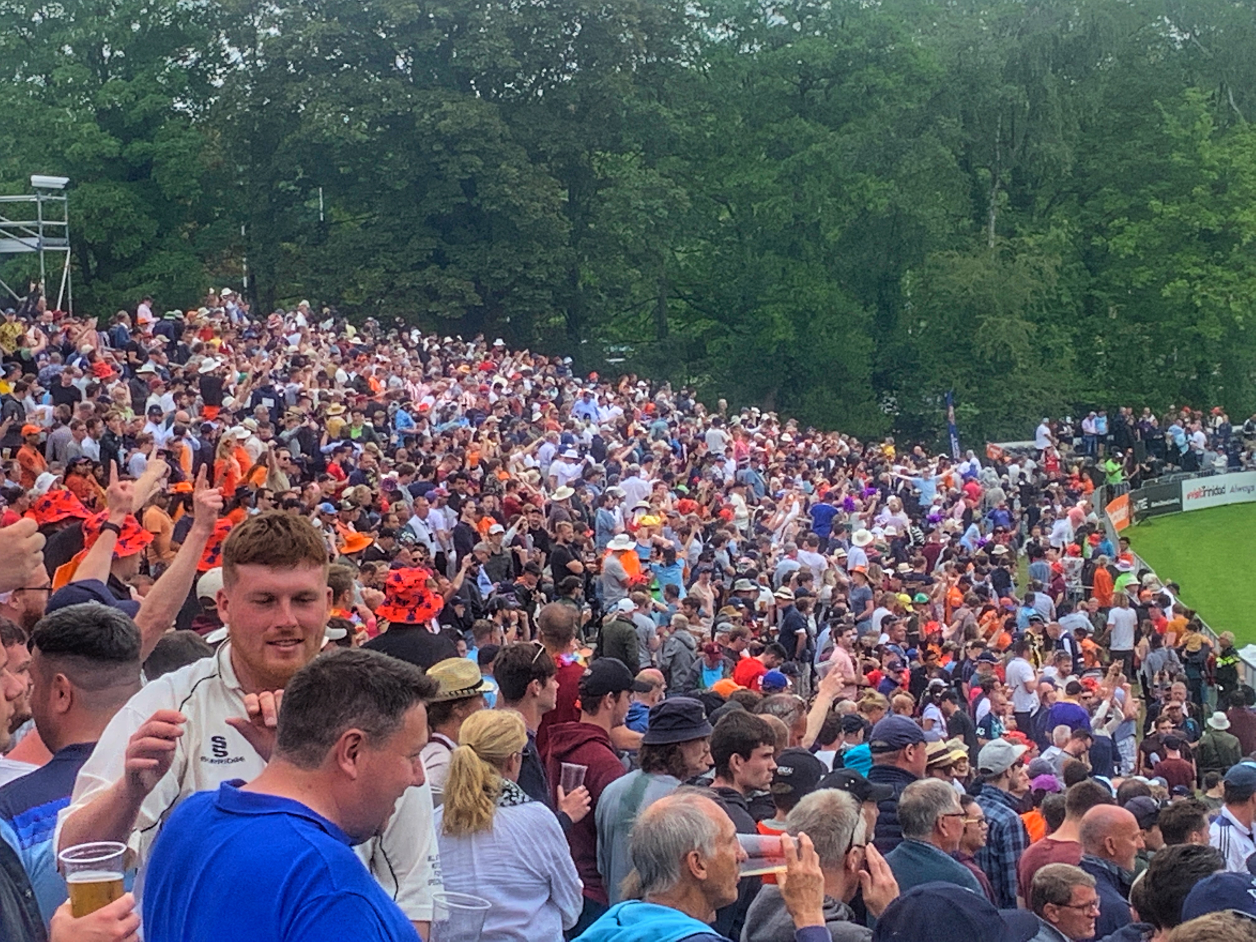 The DJ kept the tunes turned to volume 11 and the sight of the umpires carrying out another inspection was met with universal boos. Yes, the crowd was enjoying the atmosphere, the beer and the make-shift mini games of cricket taking place under the stands but we had paid good money (€60) to watch some cricket.