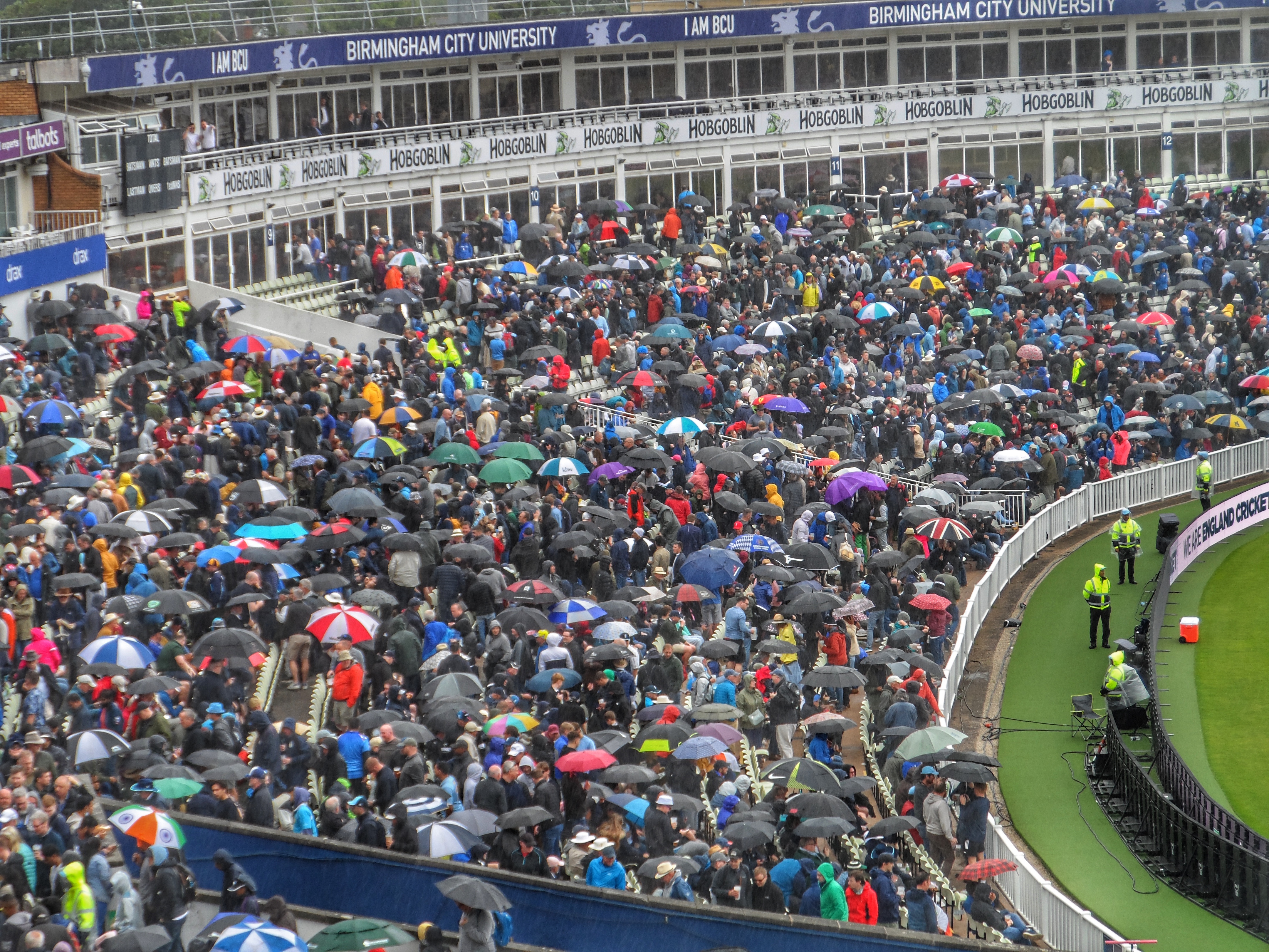 Our train to Birmingham should have got us to the ground in time for the start of play. Alas, signal problems outside of Coventry meant by the time we trundled into New Street, we had missed four wickets and the extraordinarily Stuart Broad over which saw India plunder 35 runs.