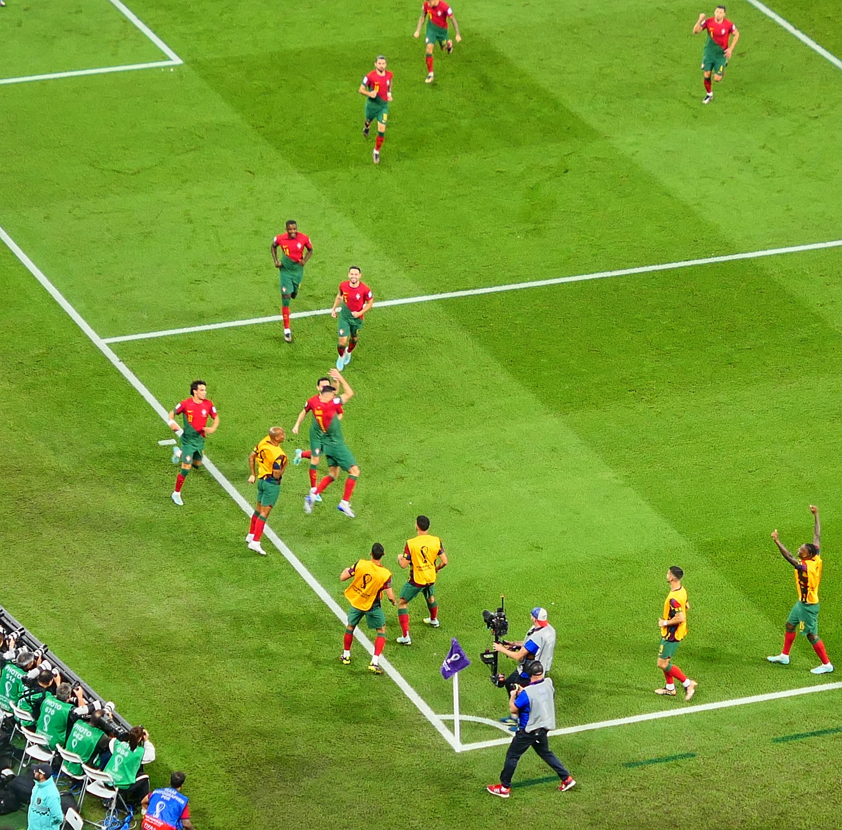 Any doubts about this being a dull affair were soon dispelled and this turned out to be the best 45 minutes I saw in the tournament and perhaps that anyone else saw. It all kicked off on the hour mark when Ronaldo, who else, surged into the area and went down very easily under a challenge from Salisu. There was no doubt this would be a penalty – there would conveniently be no VAR review. He stepped up, scored and celebrated like it was the World Cup winning goal.