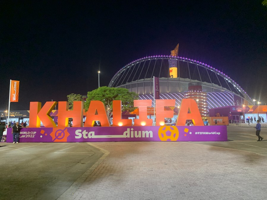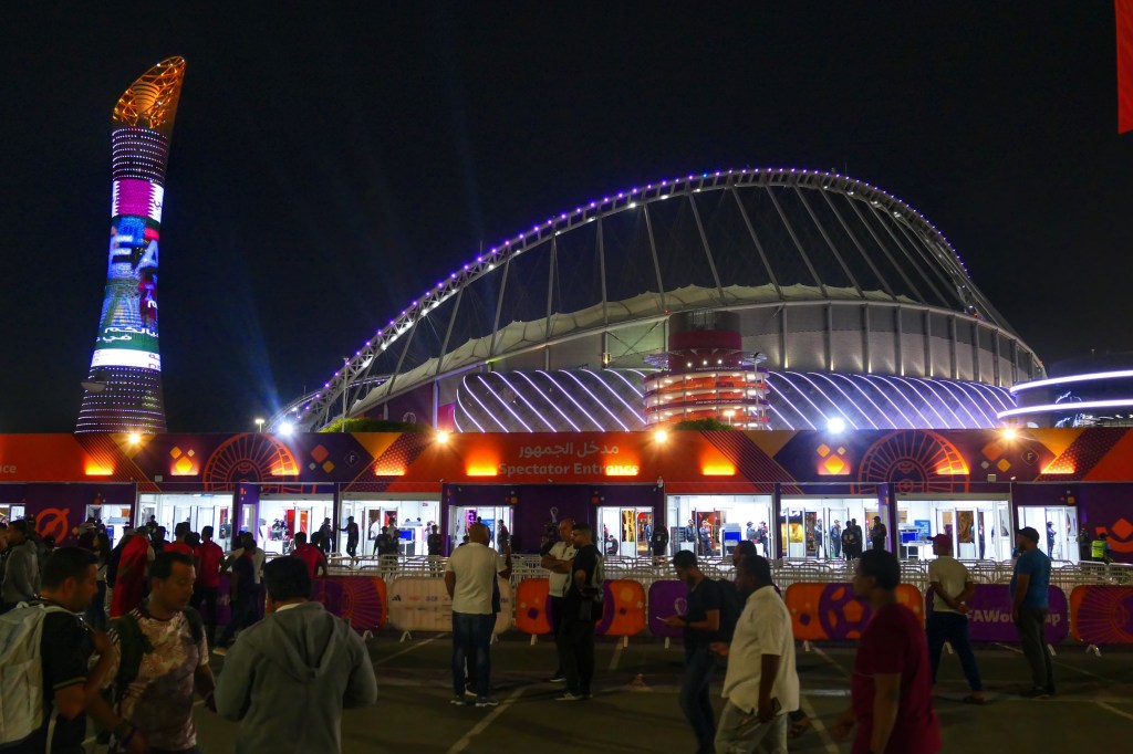 The stadium is certainly impressive from the outside. Khalifa International Stadium had hosted a long list of momentous sporting events since its inauguration in 1976 and had seen a new tier added for the tournament. Overlooking the stadium was the impressive 980ft Torch Tower, the tallest building in Qatar housing a hotel that wasn’t for the likes of you and I, with its rooftop bar and panoramic views of the city. I make that last statement after trying to see if I could enter and have a drink at the bar which may give a view inside. Of course nobody else would have had the same idea….I got as far as the approach road before being politely turned away by security.