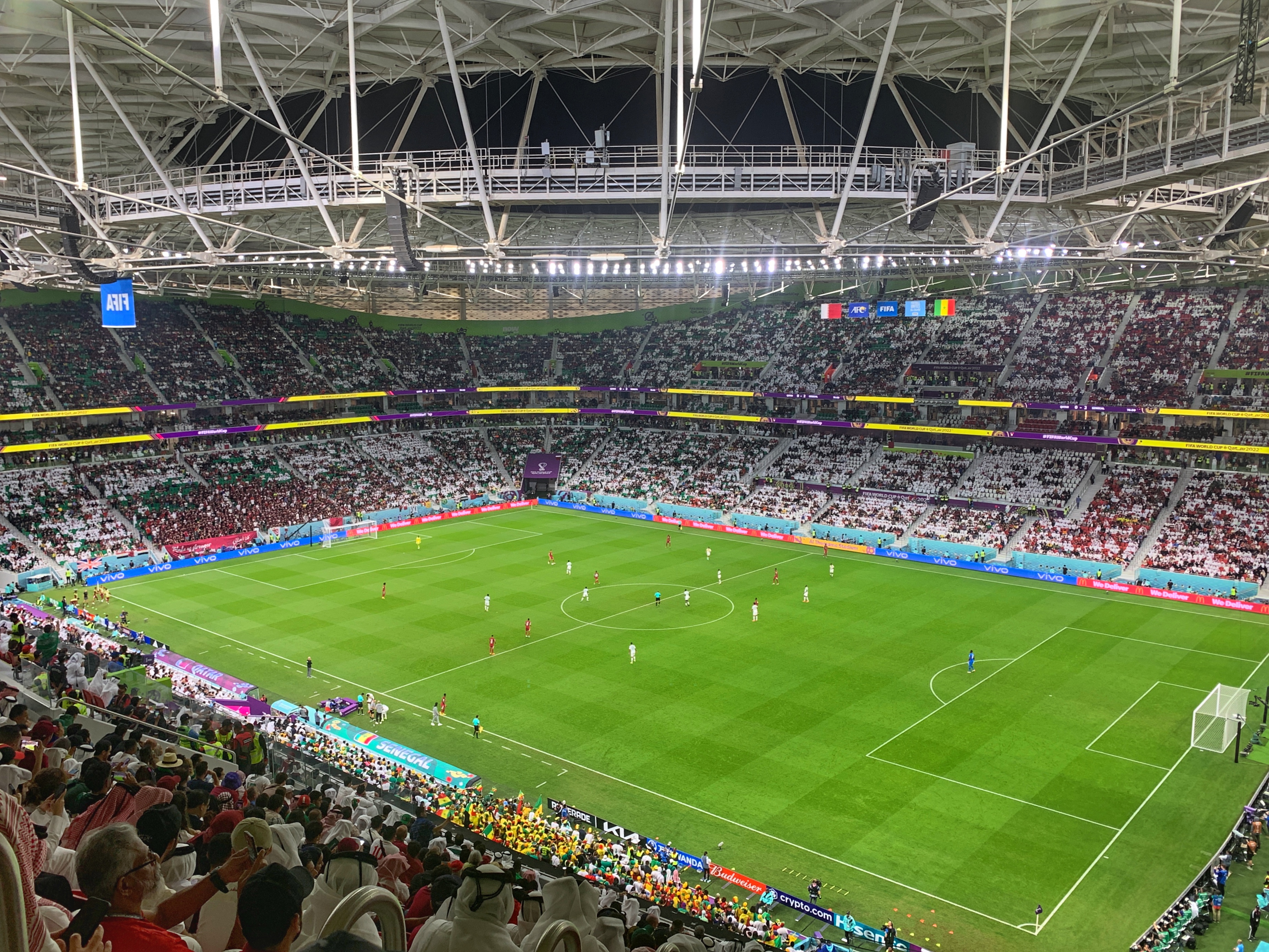 Half-time saw another major exodus of fans from the VIP section opposite and any of them that had stayed would have still been tucking into their 5-course feast when Diedhiou brilliantly glanced in from a corner in the 48th minute. Qatar were out – whilst there was 40 minutes left in the game, they had yet to record a shot on target. In fact it took another 15 minutes before that happened, with Chelsea’s keeper Mendy getting down low to palm a shot around the post from Ali.