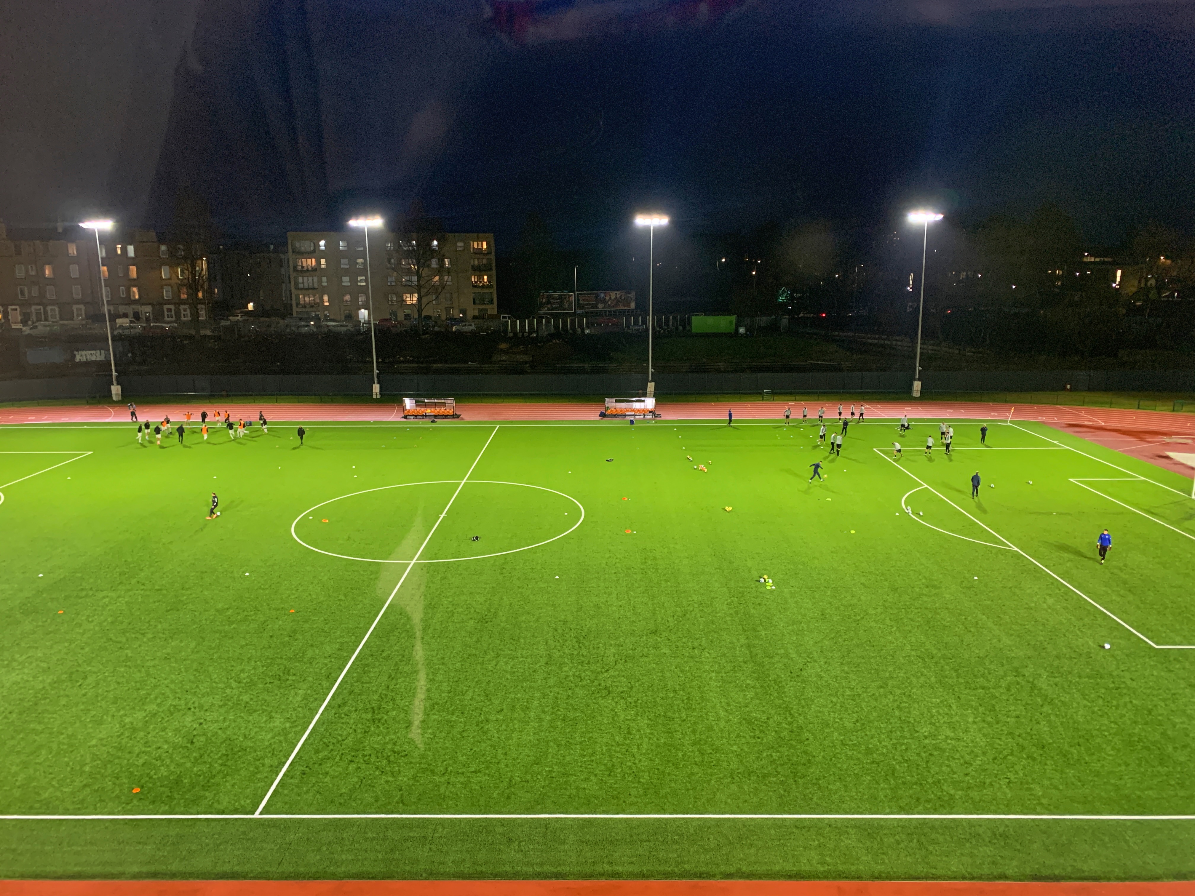 So here I am, sitting in the lounge at Meabowbank Stadium, on the edge of Edinburgh’s city centre. The rain continues to pour down outside, whilst a few of the players limply warming up on the pitch, looking as if they want to be somewhere else on a Friday night. In fact, having spent a few wonderful, and dry hours in the Vault City taproom, so do I.