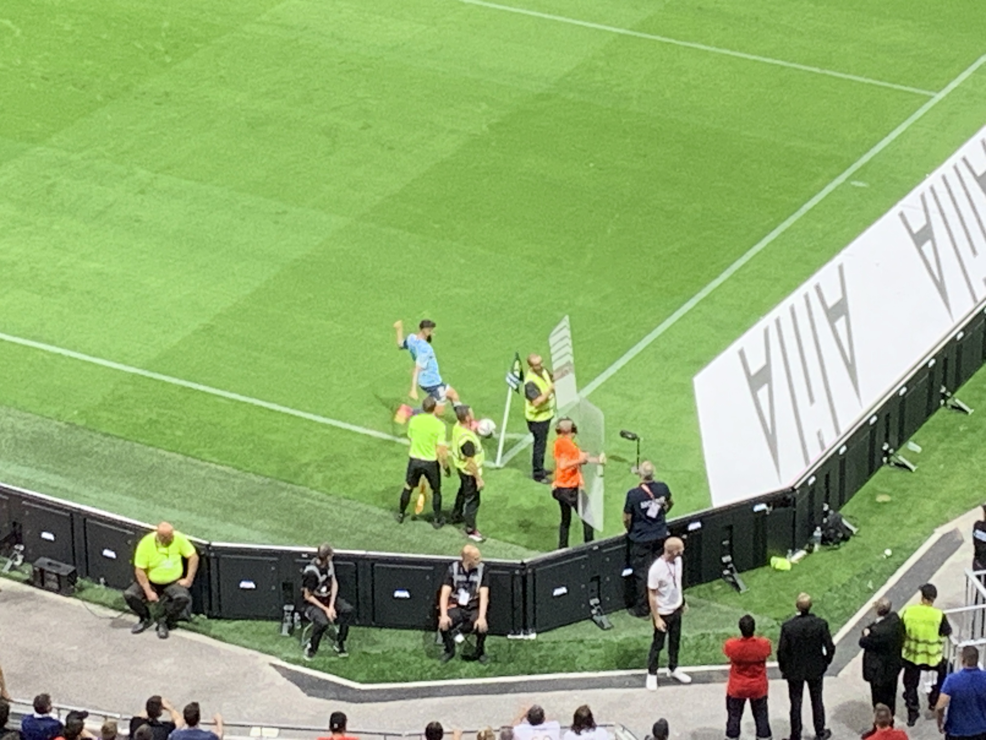 Finally I was able to enter the impressive stadium. It was a long climb up to the top tier but the view was superb – an absolute bargain at €12, less than the cost to watch most Step 4 clubs today, yet here I was watching one of France’s most successful teams in one of Europe’s most modern major stadiums. The stadium has hosted the Europa League Final, a host venue in Euro2016, will be used in the coming weeks for the Rugby World Cup and the 2024 Summer Olympics. Built it and they will come. But having fantastic facilities doesn’t necessarily bring in the field success.